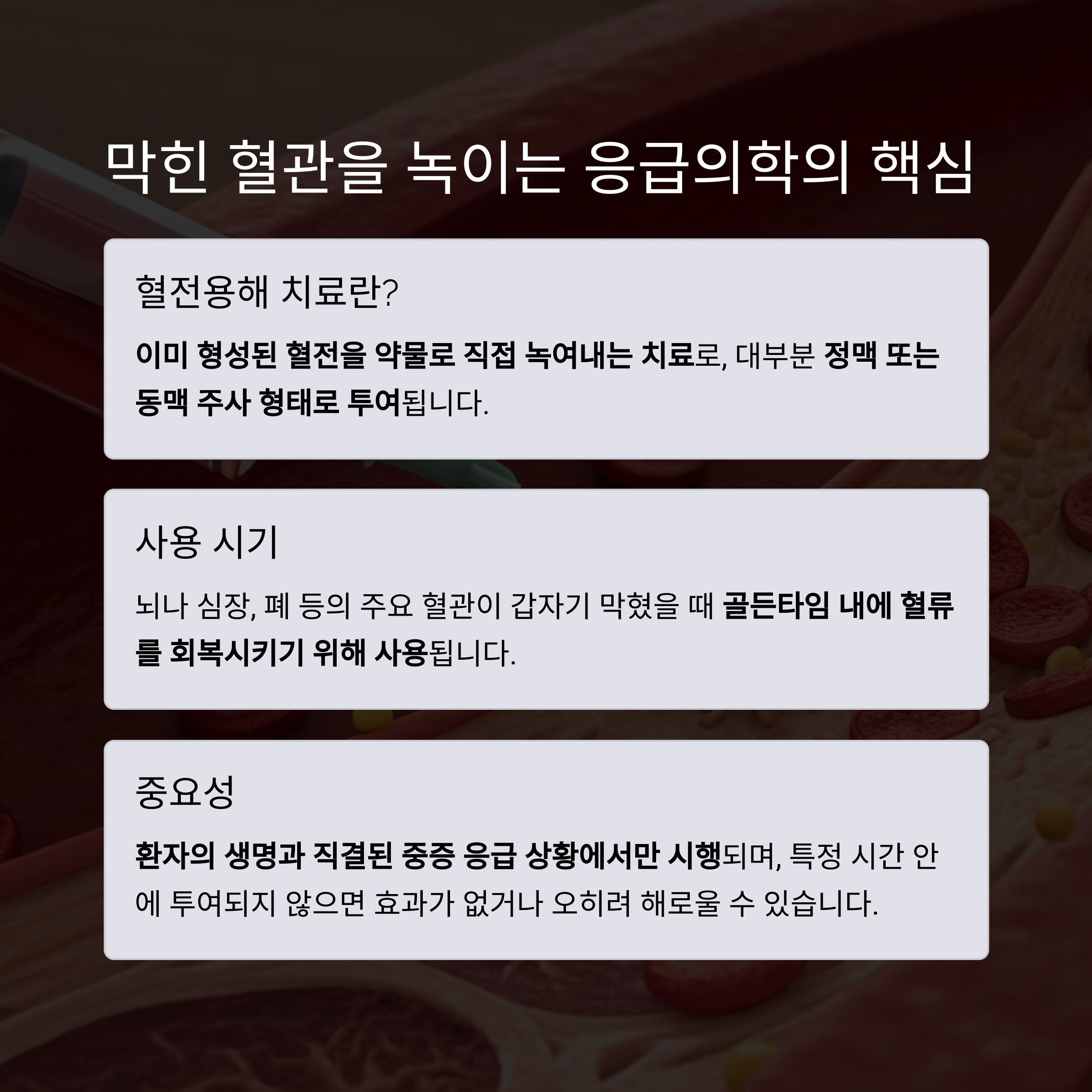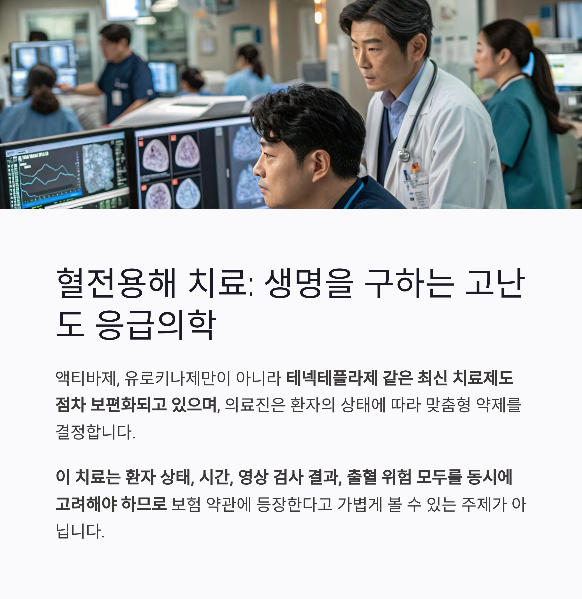 결론: 혈전용해 치료는 ‘주사 한 번’이 아니라, 생명을 구하는 고난도 응급의학