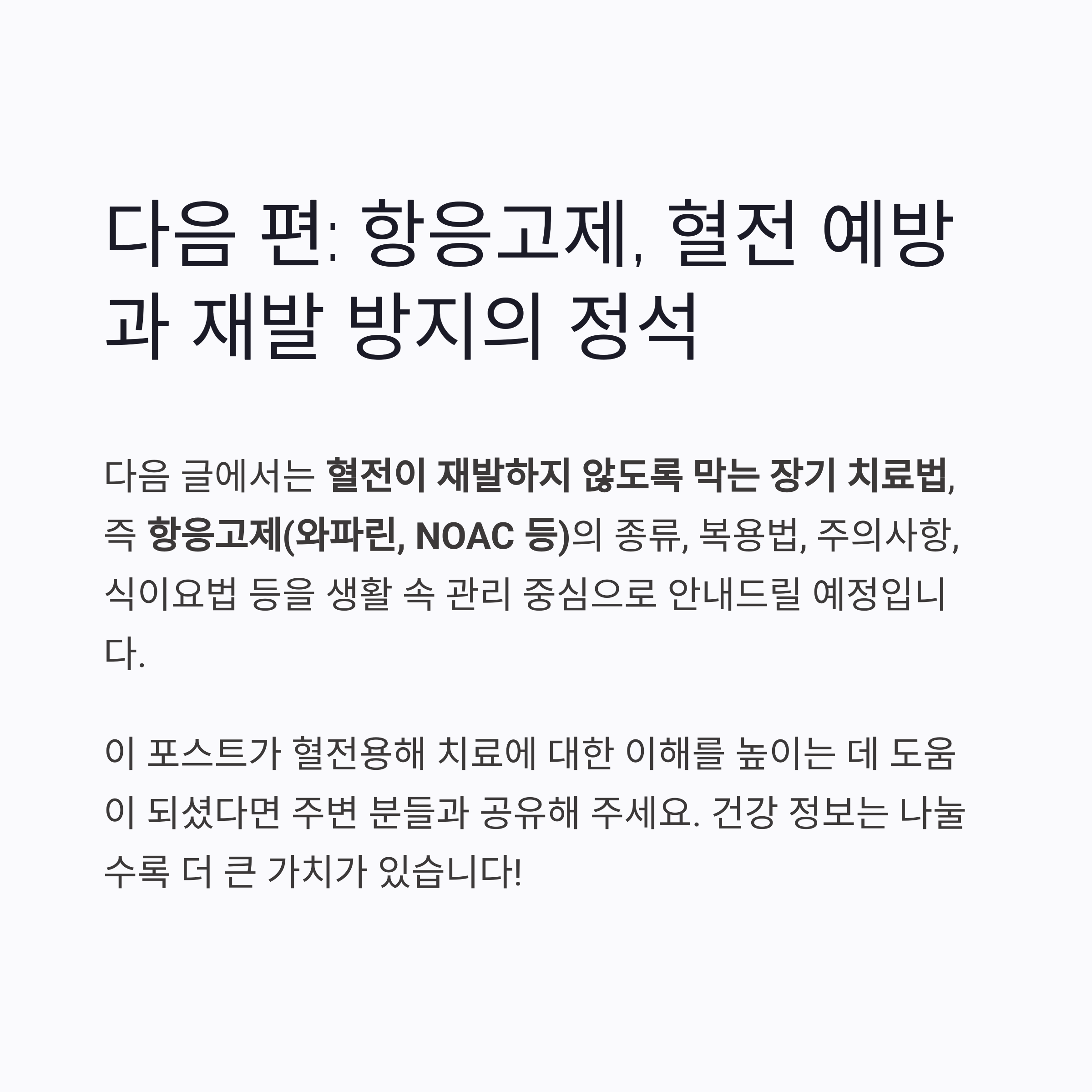 다음 편 예고: 항응고제, 혈전을 예방하고 재발을 막는 약물의 정석
