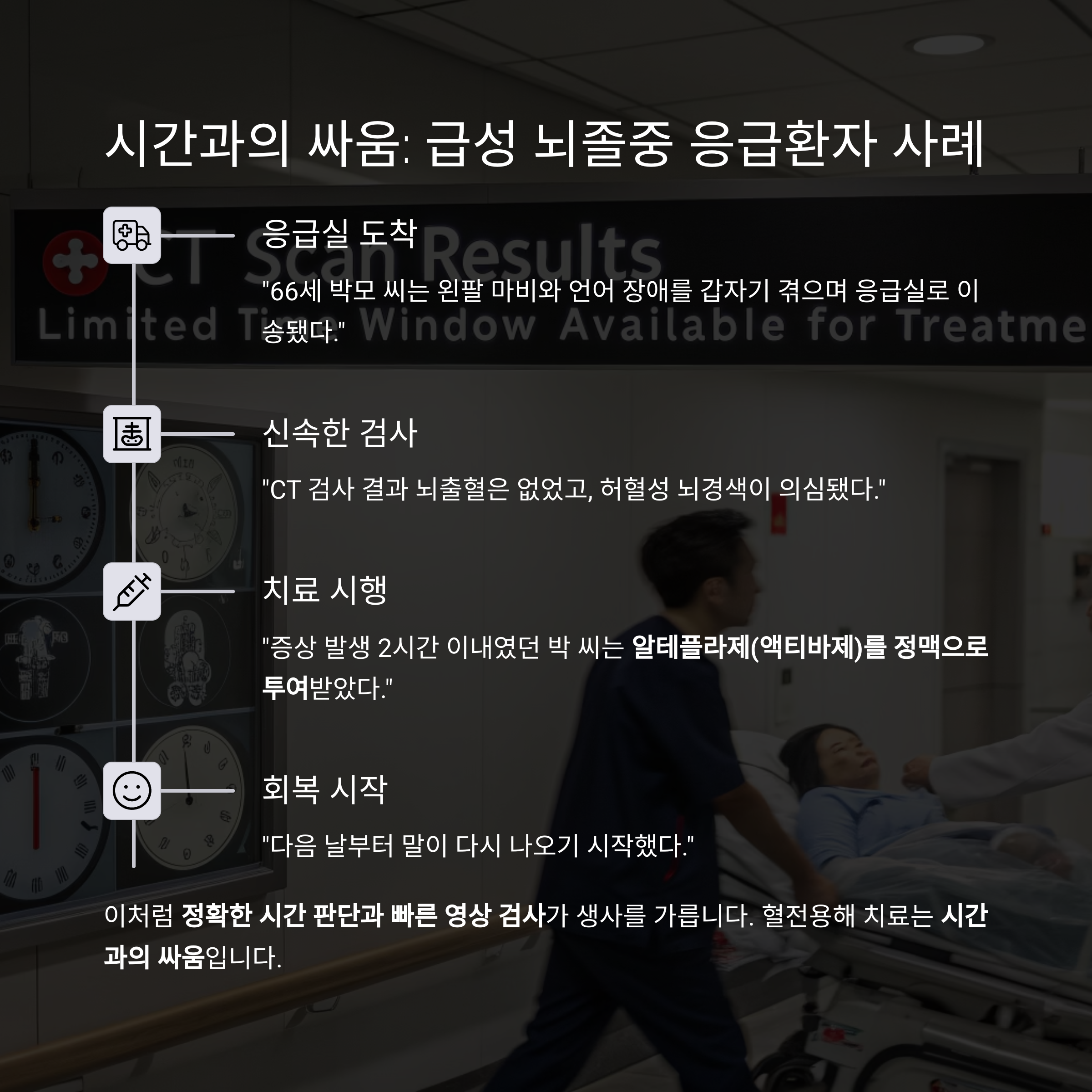 이처럼 정확한 시간 판단과 빠른 영상 검사가 생사를 가릅니다.