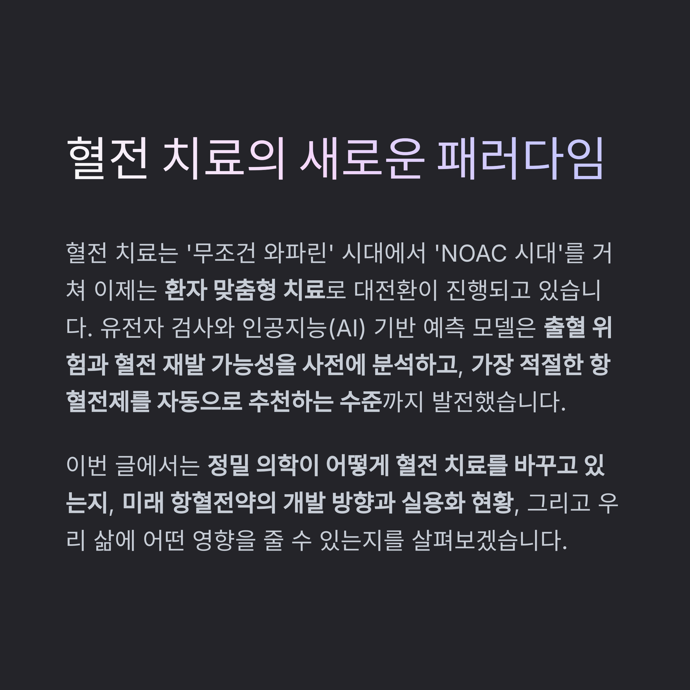 혈전약, 이제는 유전자와 인공지능으로 조절하는 시대가 될까요?