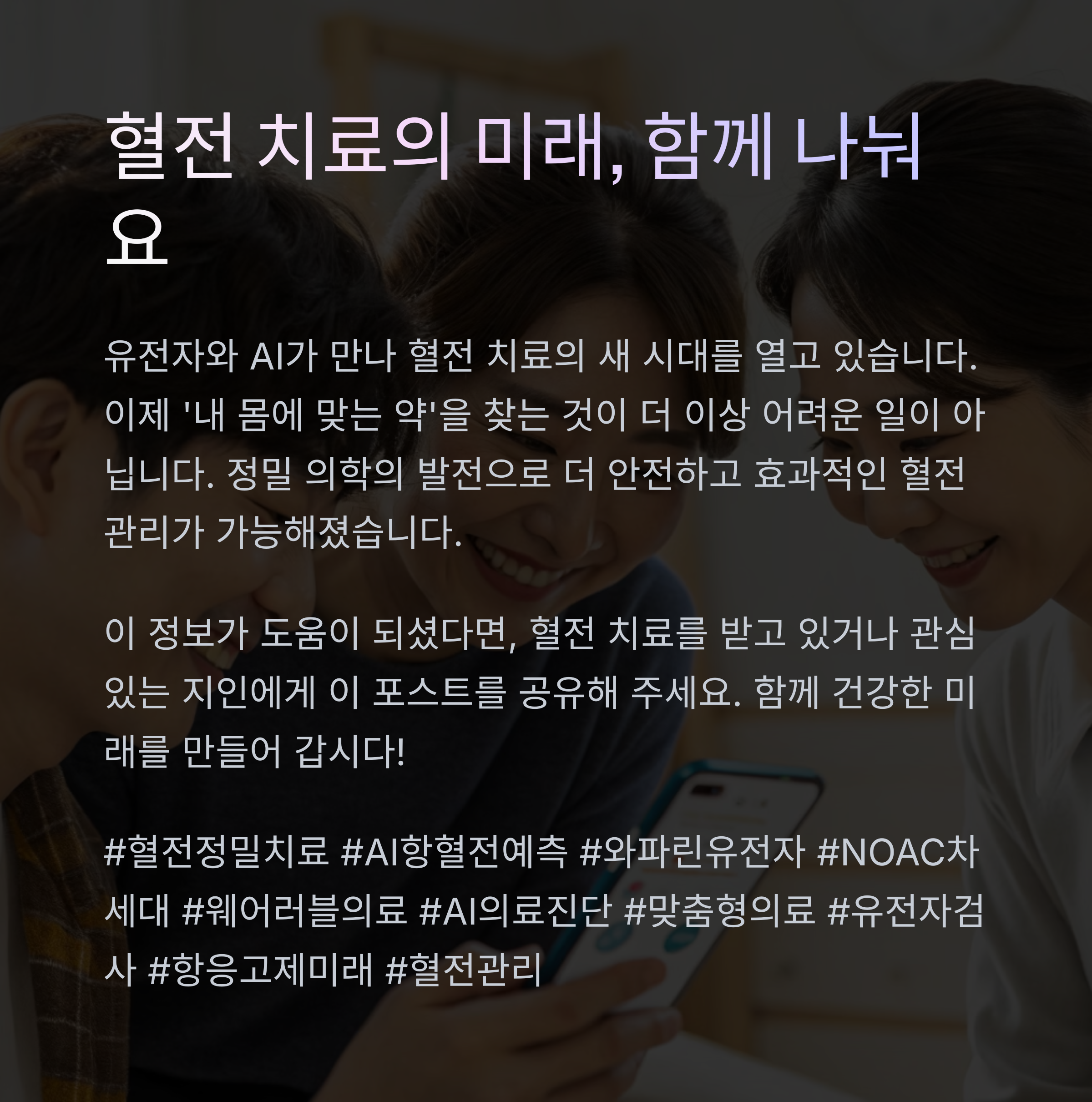 보다 안전하고 효과적인 항혈전 관리 시대가 열릴 것입니다.