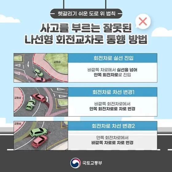 이번 캠페인은 국토교통부, 행정안전부, 경찰청 등 관계기관 합동으로 이뤄지고 회전교차로 올바른 통행 방법을 알리기 위해 40일간 집중 실시된다고 합니다.