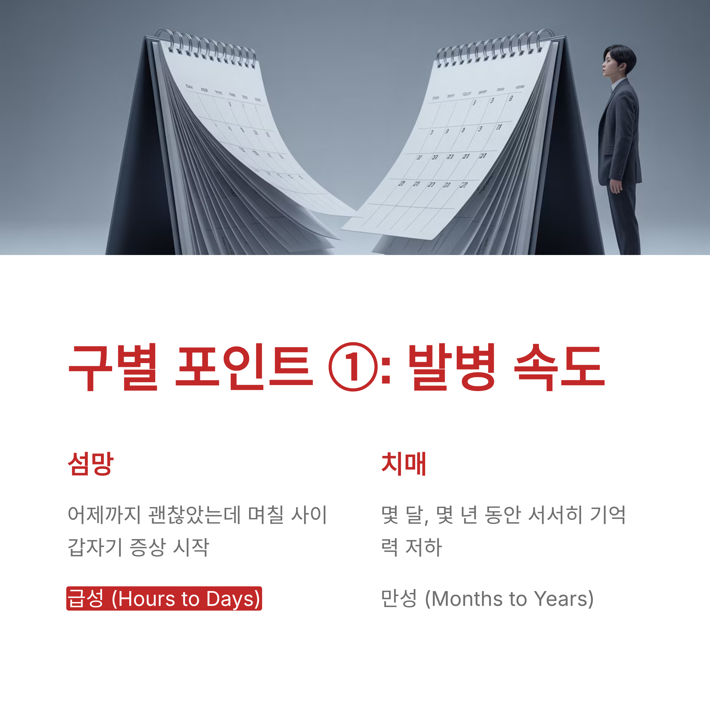 1. 발병 속도: "언제부터 이상했나요?"