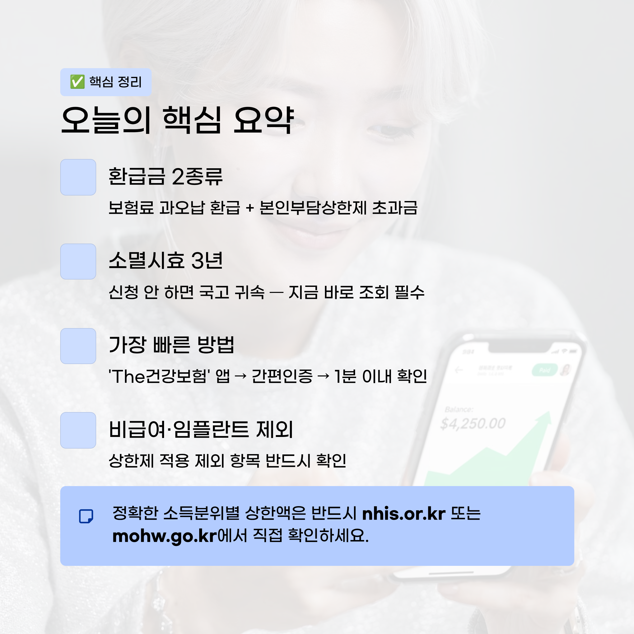 ✔️ 정확한 소득분위별 상한액은 반드시 nhis.or.kr 또는 mohw.go.kr에서 직접 확인