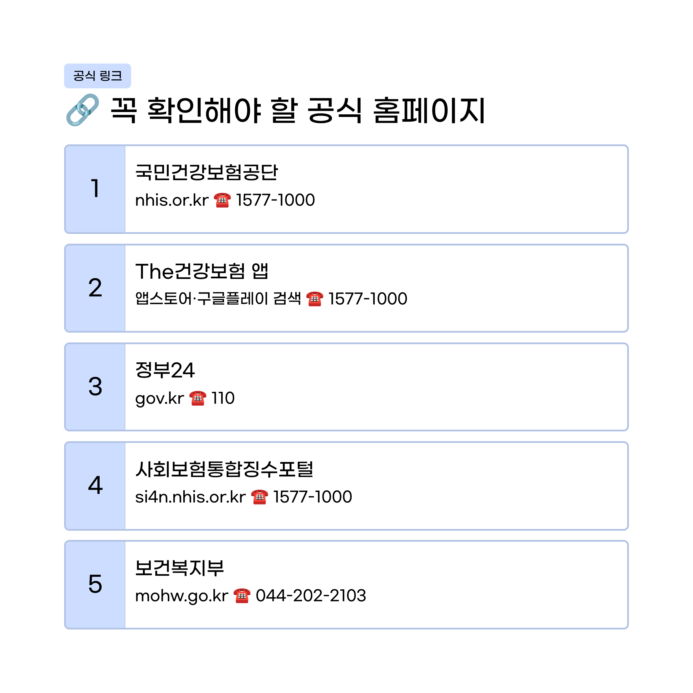 - 국민건강보험공단: nhis.or.kr