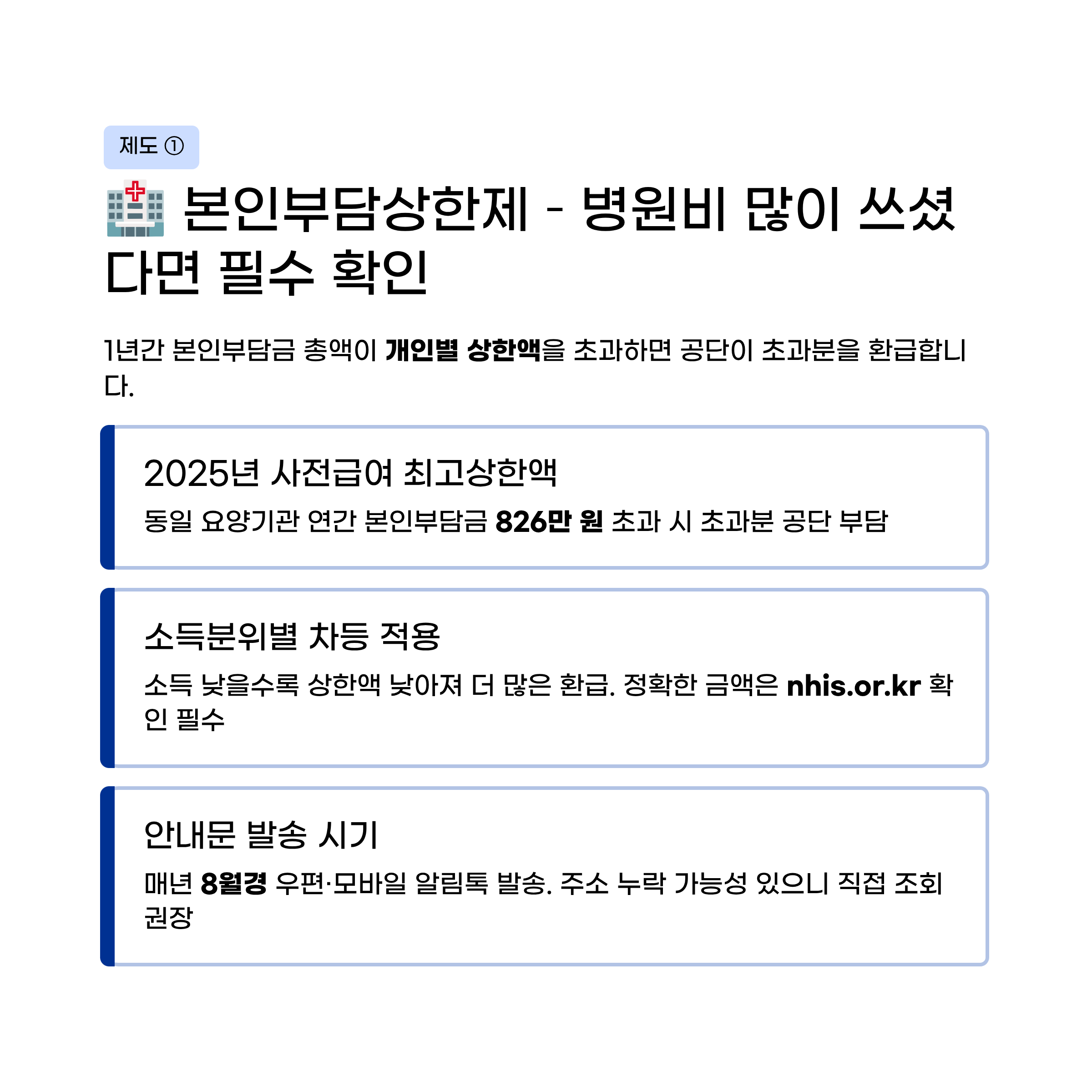 🏥 제도 ① 본인부담상한제 – 병원비를 많이 쓴 분이라면 반드시 확인