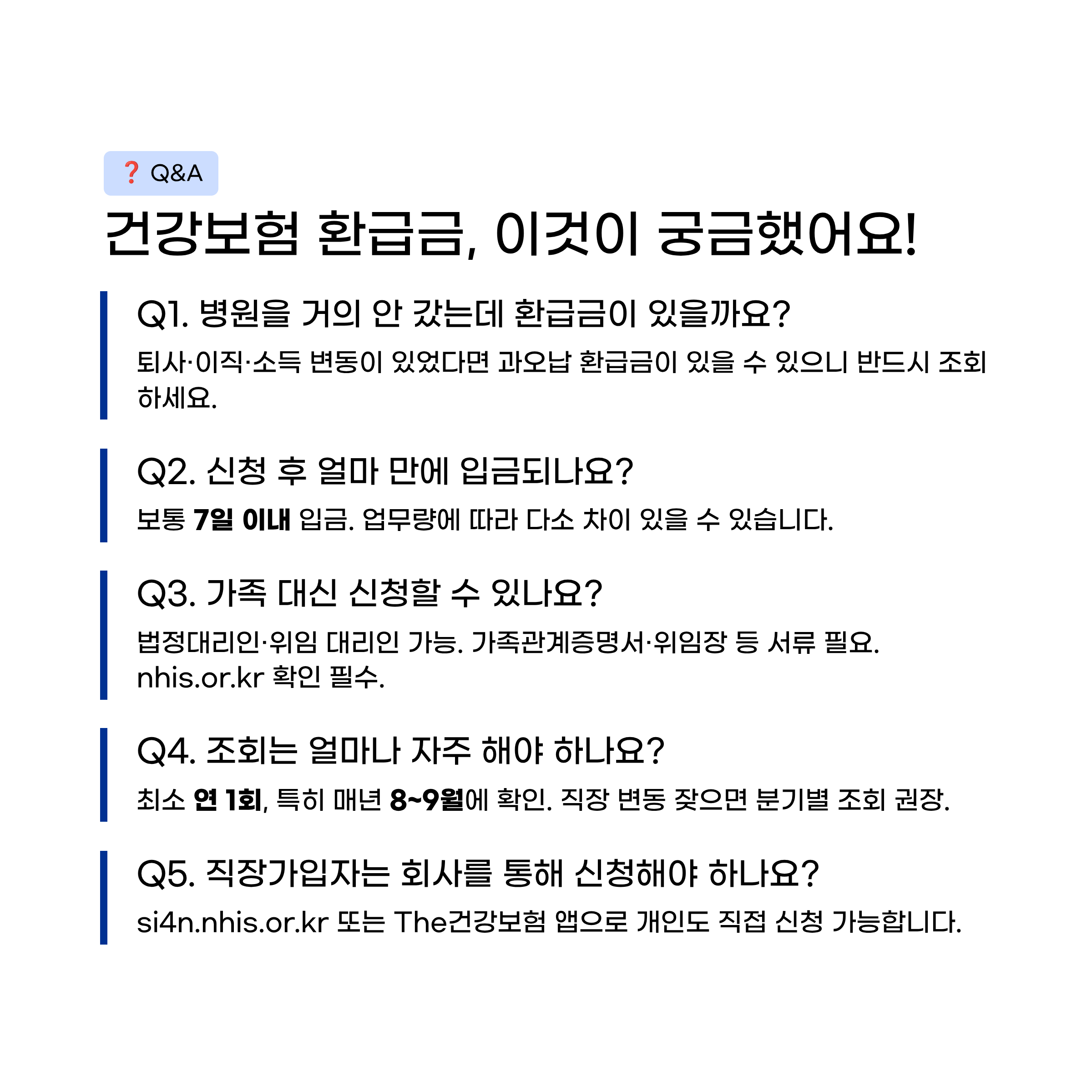 ❓ Q&A – 건강보험 환급금, 이것이 궁금했어요!
