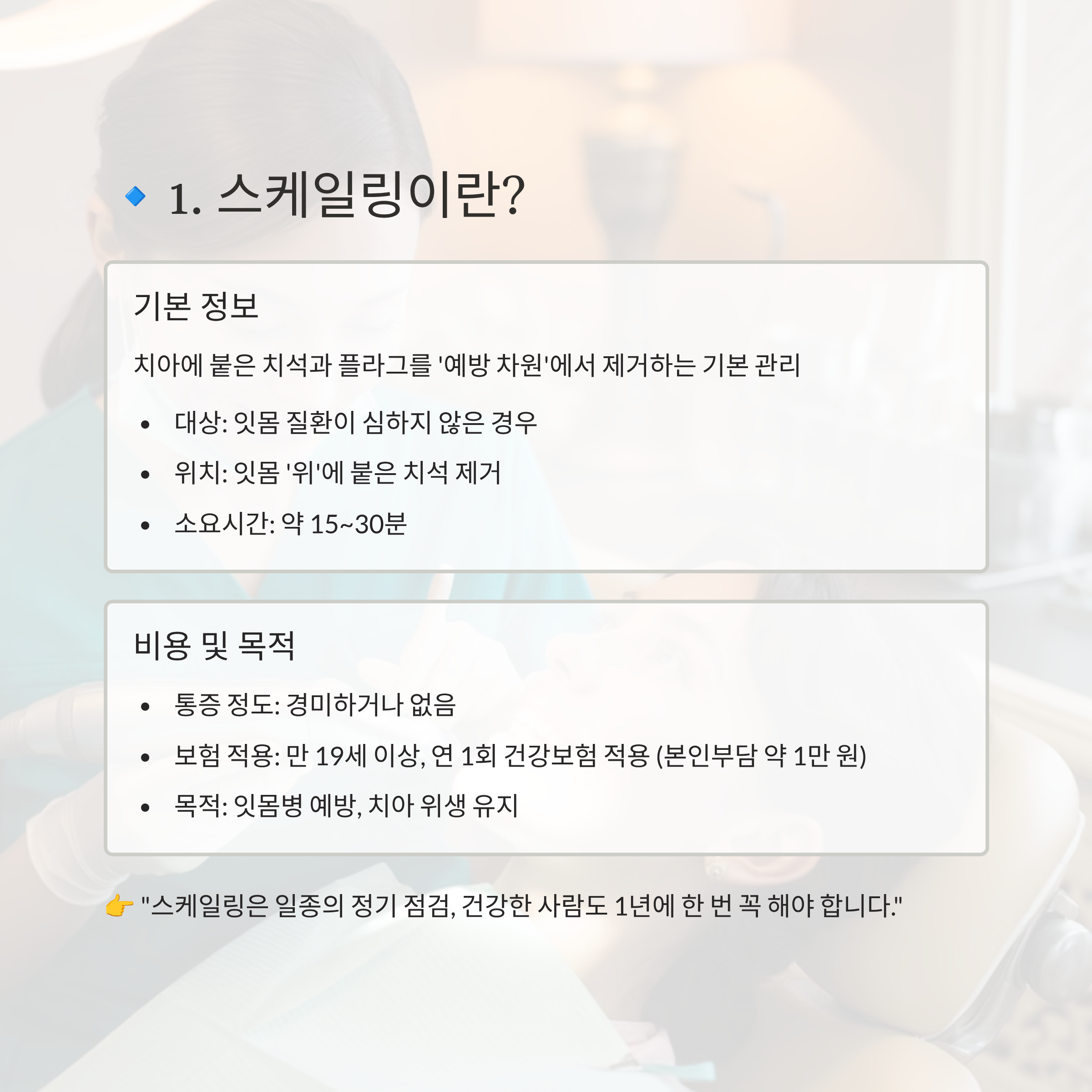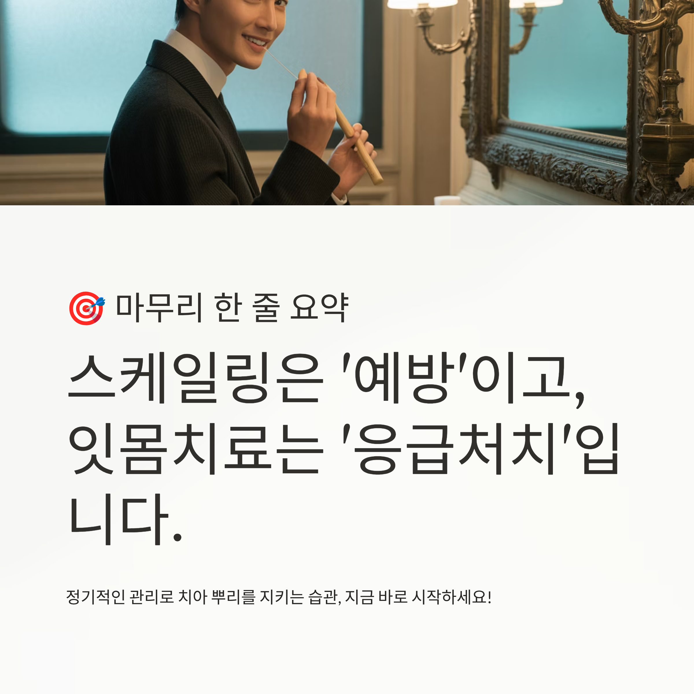 👉 “스케일링은 일종의 정기 점검, 건강한 사람도 1년에 한 번 꼭 해야 합니다.”