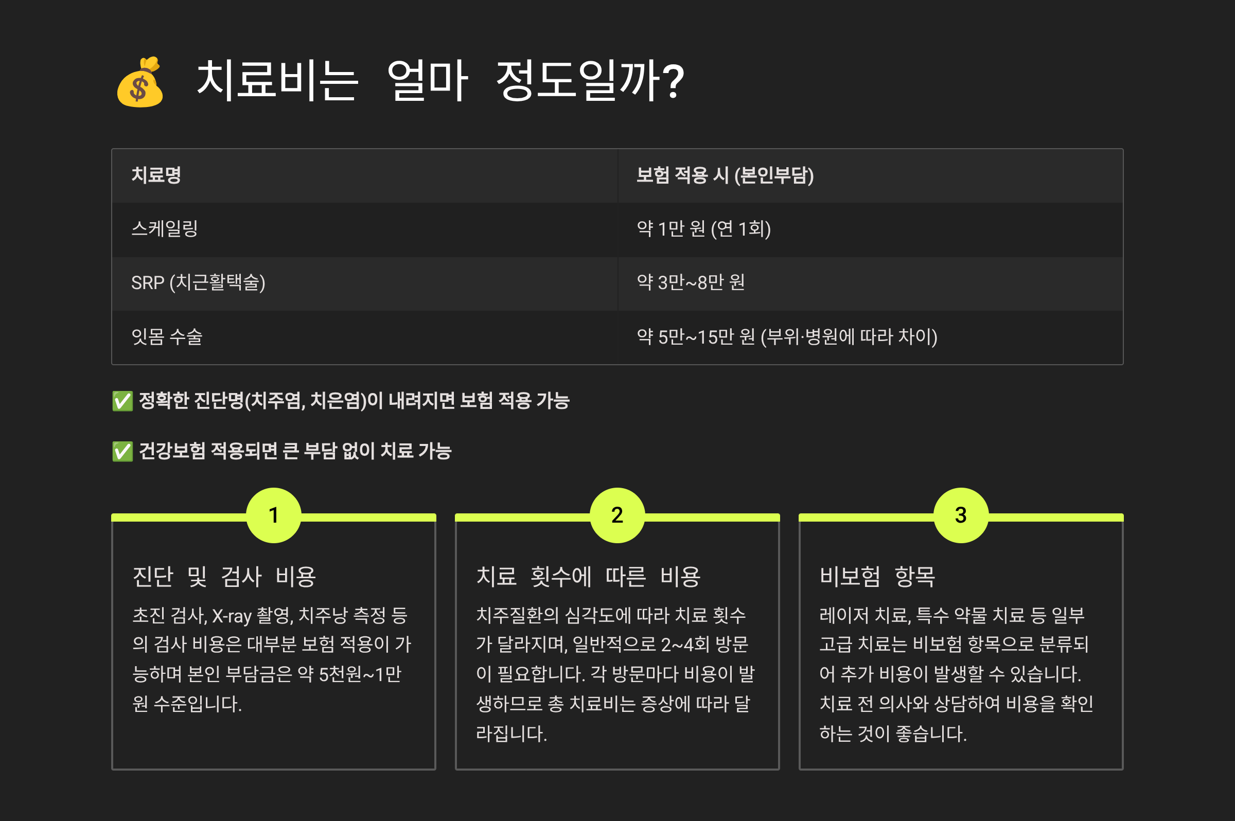 ✅ 정확한 진단명(치주염, 치은염)이 내려지면 보험 적용 가능