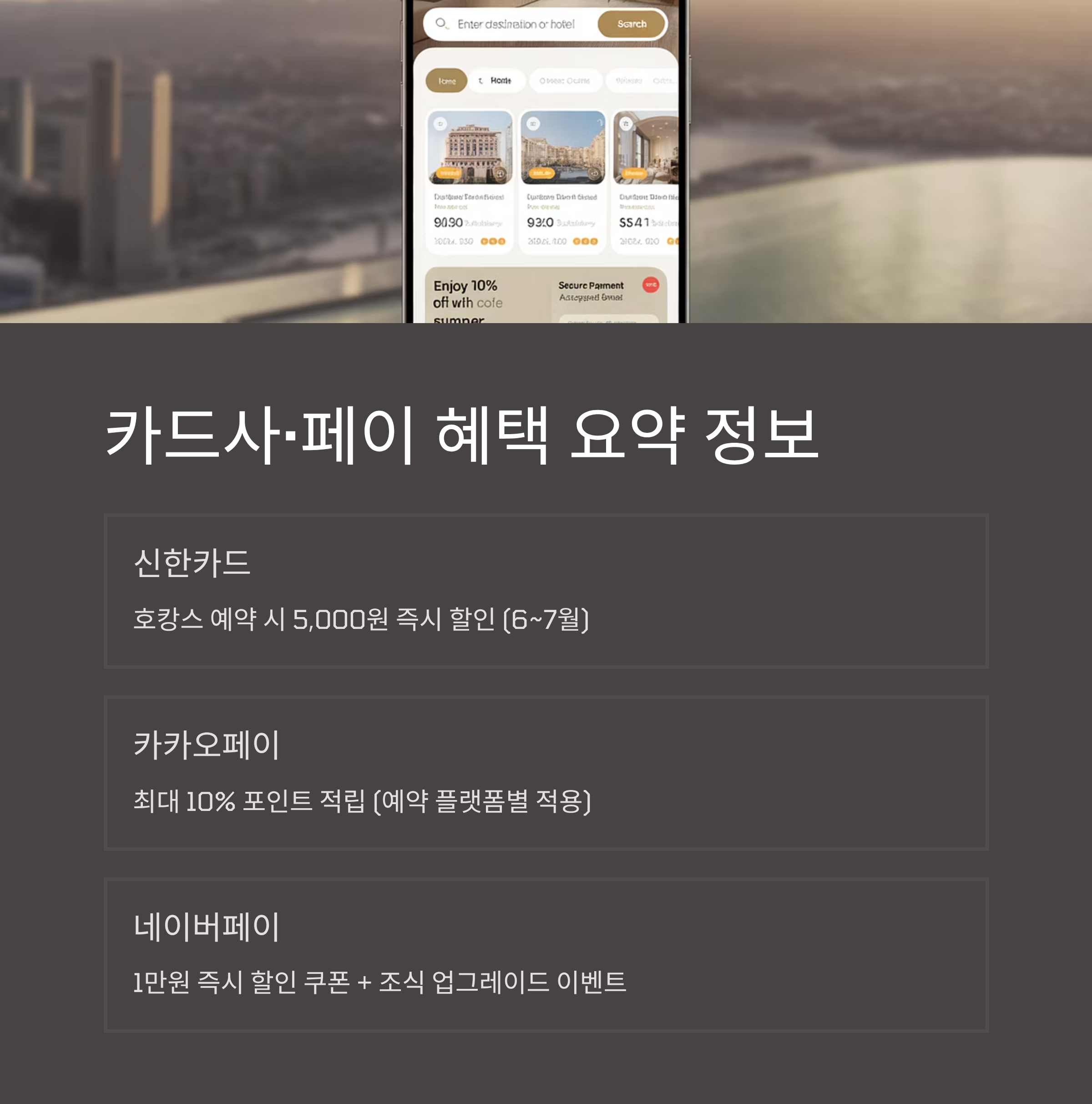 | 신한카드 | 호캉스 예약 시 5,000원 즉시 할인 (6~7월) |