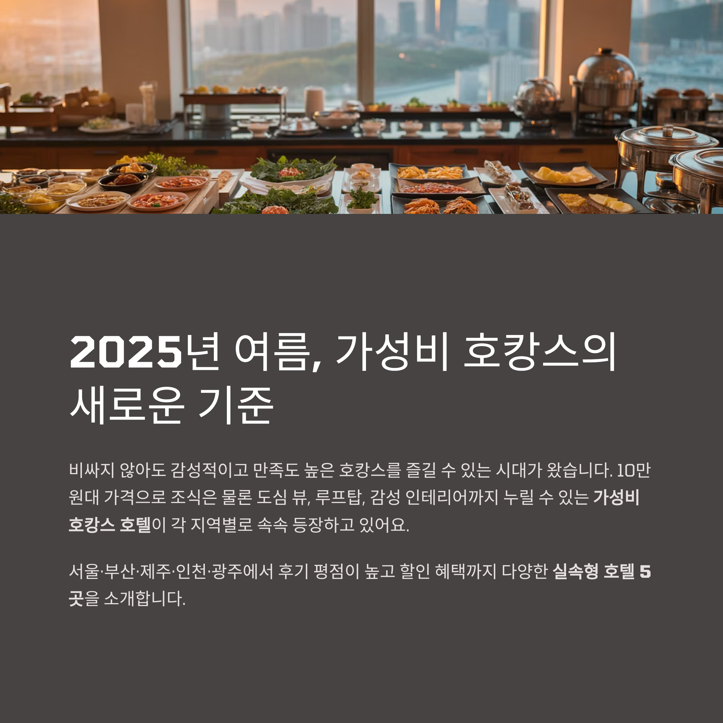 특히 2025년 여름, 10만원대 가격으로 조식은 물론 도심 뷰, 루프탑, 감성 인테리어까지