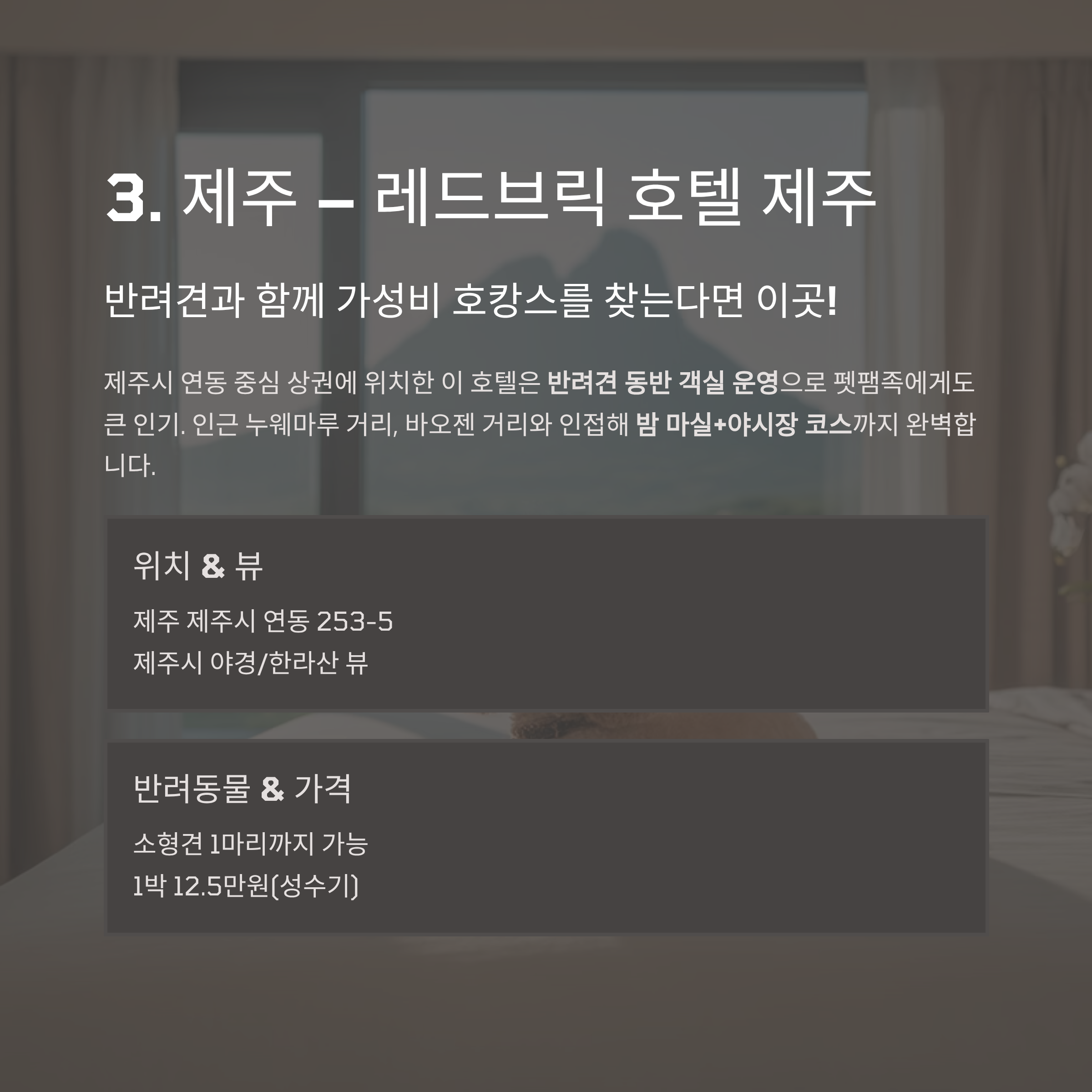 | 펫팸족 | 레드브릭 호텔 제주 | 반려견 동반 객실 운영 |