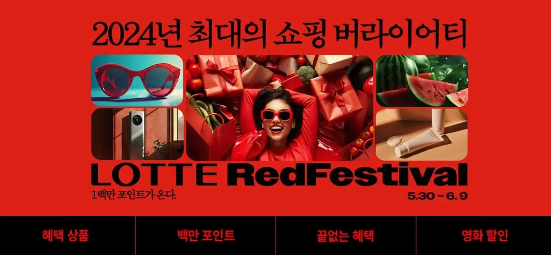 쇼핑 비수기인 6월을 맞아 상반기 ‘롯데레드페스티벌’을 5월 30일(목)부터 6월 9일(일)까지 11일간 진행한다. 지난해 하반기 행사보다 규모와 혜택을 대폭 늘려 역대 최대의 쇼핑 이벤트를 마련했다.