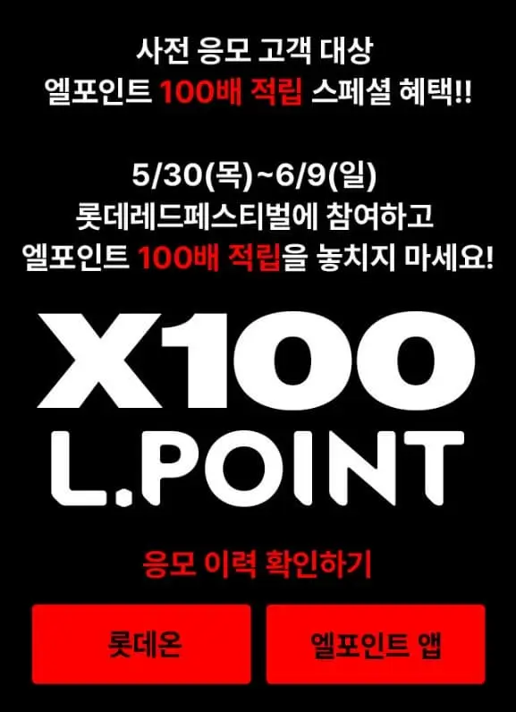 사전 응모 및 롯데레드페스티벌 참여 백만포인트 도전