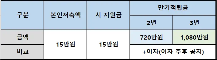 희망두배 청년통장에 가입한 후 2년 또는 3년간 매월 15만원의 금액을 저축하면 저축한 금액과 동일한 금액을 서울시 예산과 시민후원금으로 추가 적립하여 지원합니다.