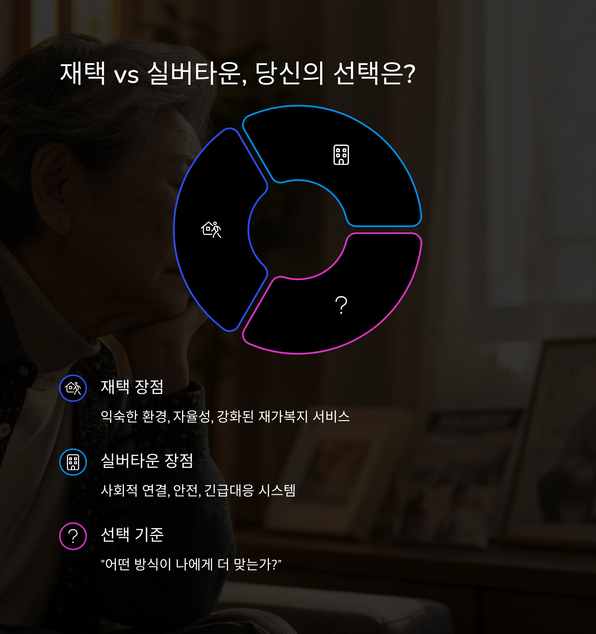 당신의 노후는 시설이 아니라, 당신의 선택과 설계에 의해 달라질 수 있습니다
