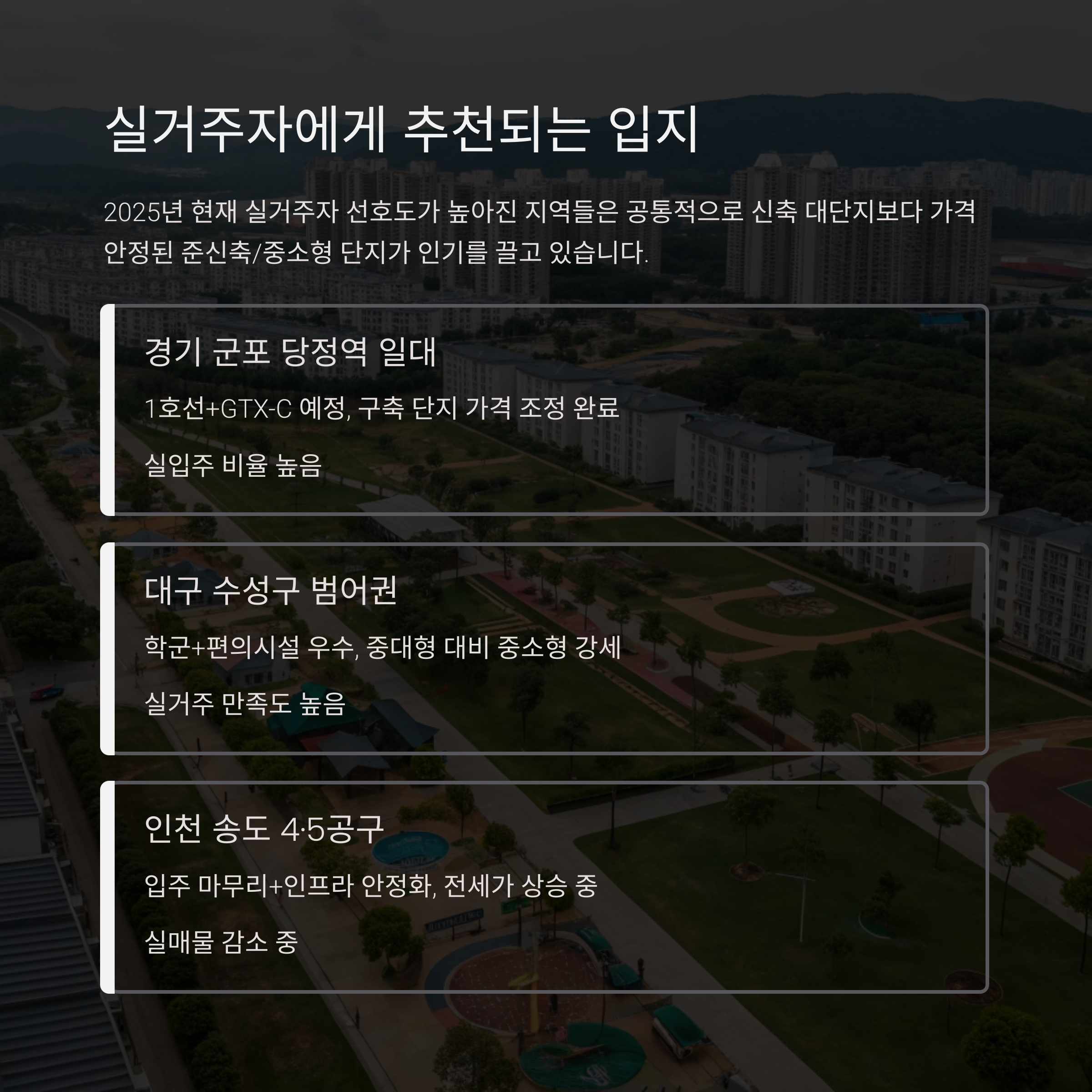 2025년 현재 실거주자 선호도가 높아진 지역 몇 곳을 예시로 소개합니다.