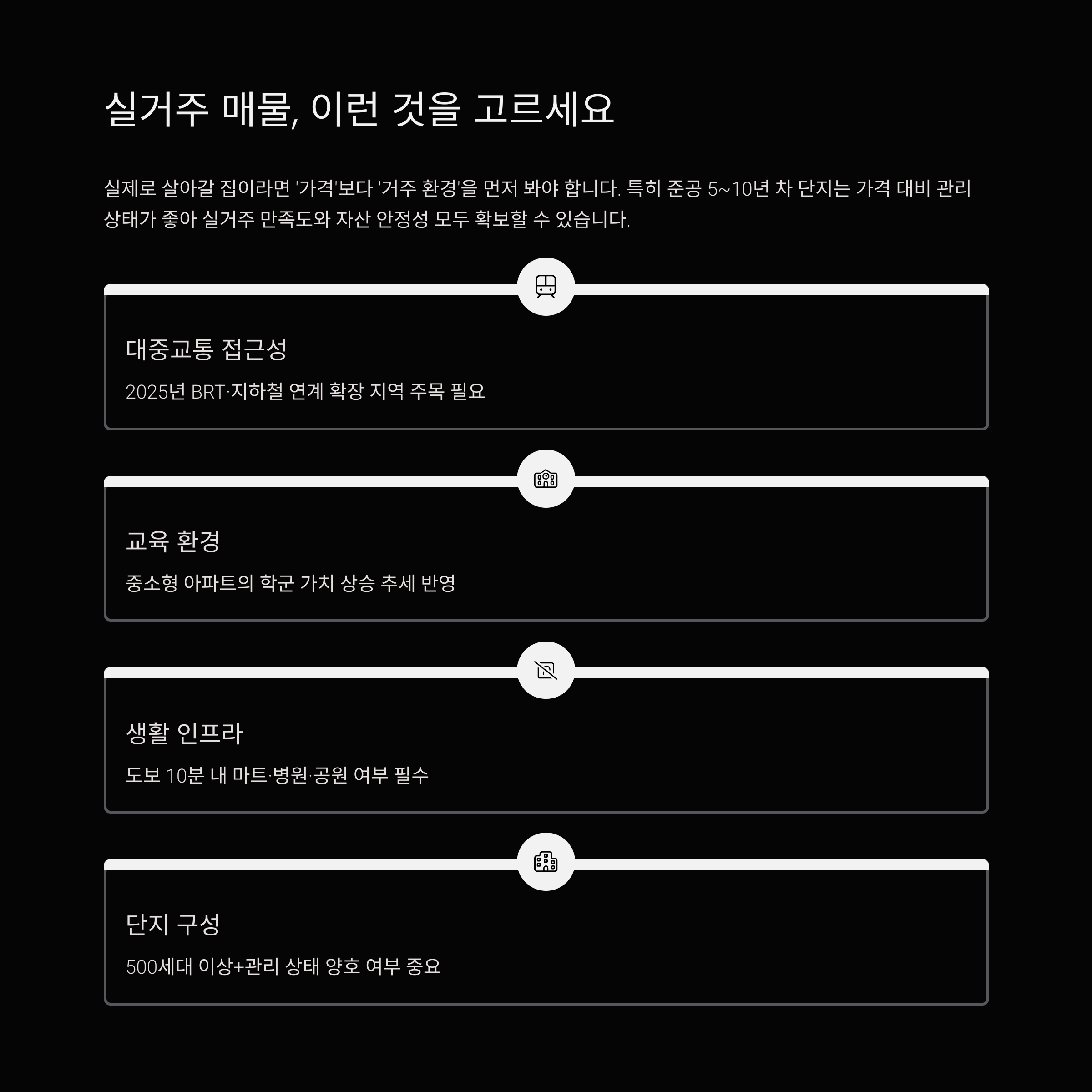 | 대중교통 접근성 | 2025년 BRT·지하철 연계 확장 지역 주목 필요 |
