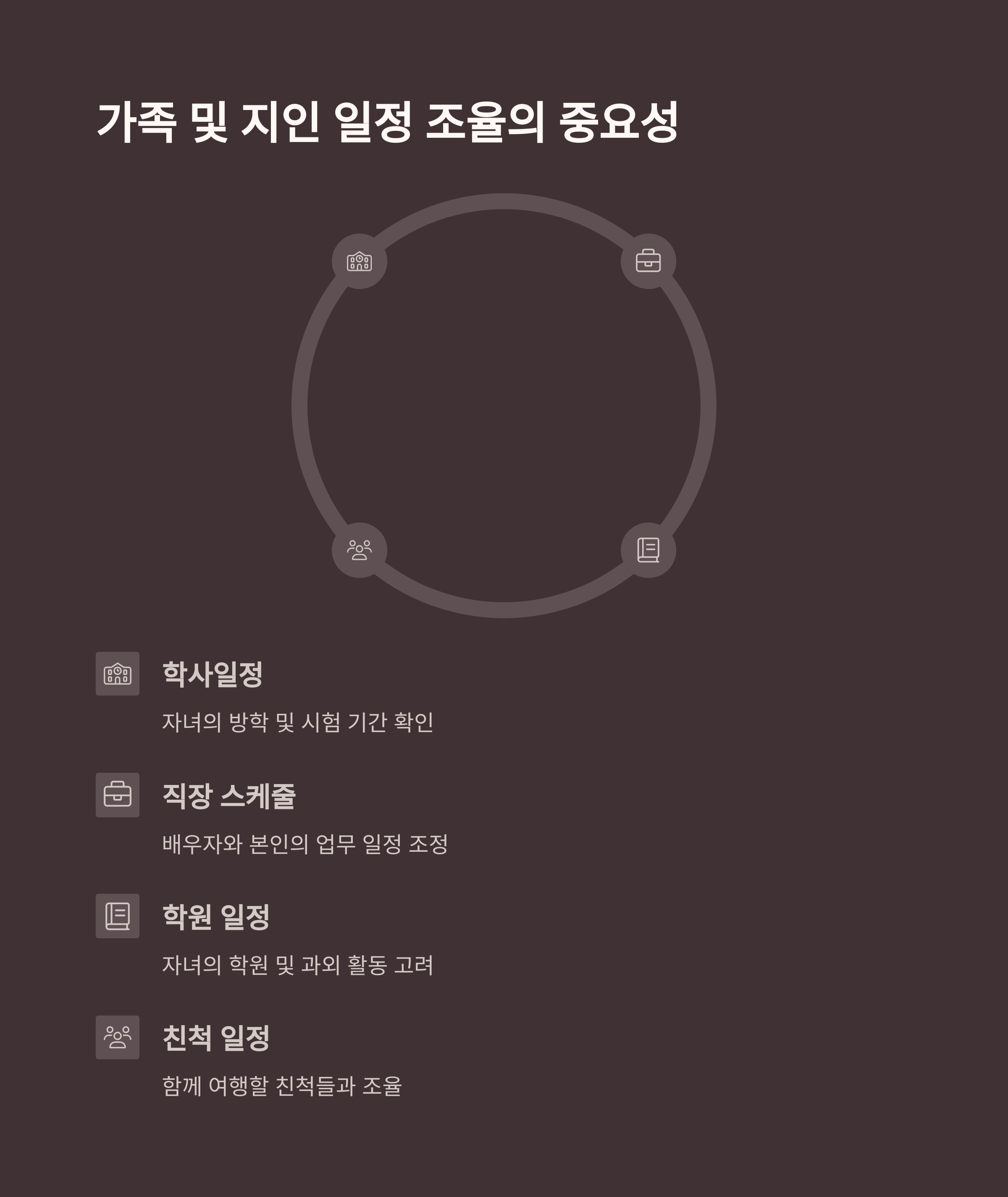 학사일정, 학원 일정, 직장 스케줄이 겹치지 않도록 조율하면