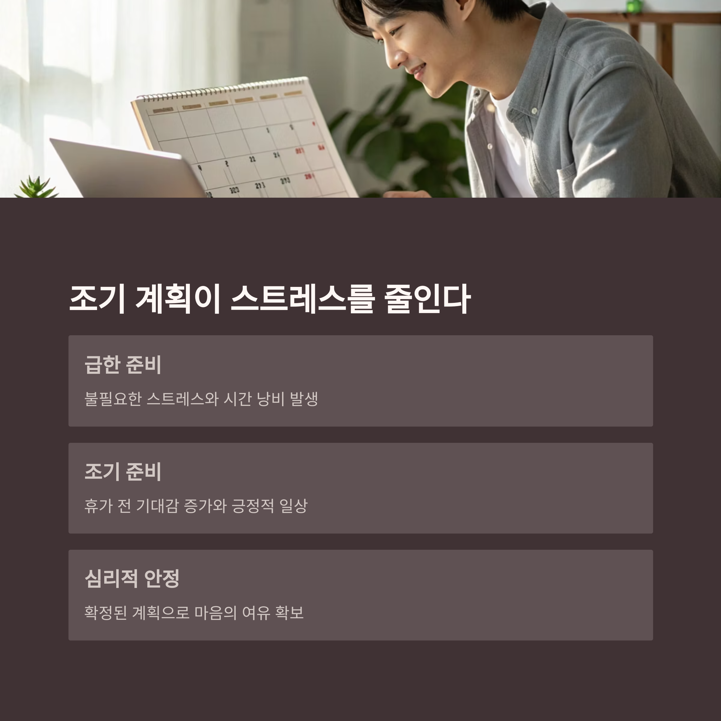 조기 준비를 통해 예산 절감, 숙소 및 교통 예약의 유리함,
