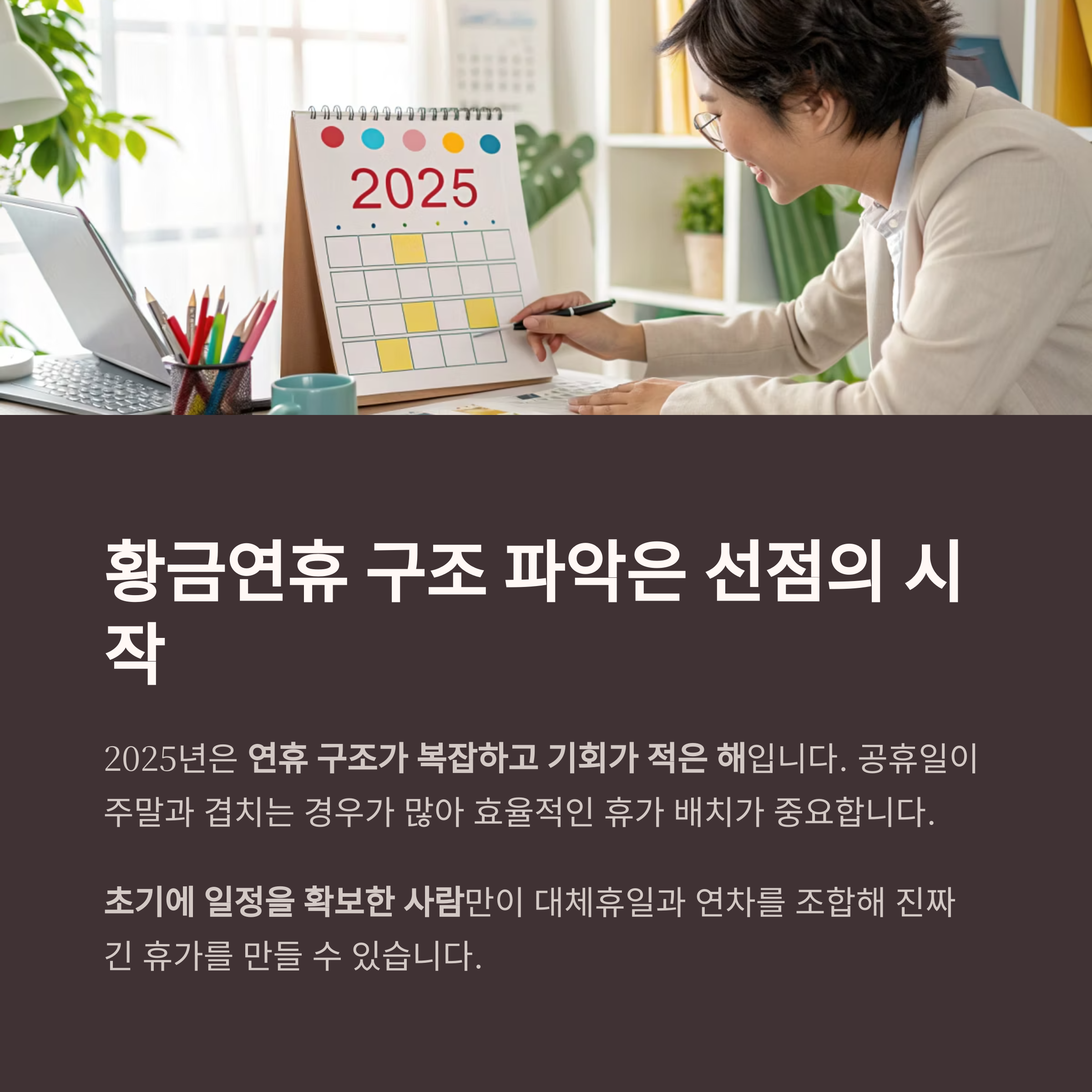 2025년은 예년보다 연휴 구조가 복잡하고 기회가 적은 해입니다.