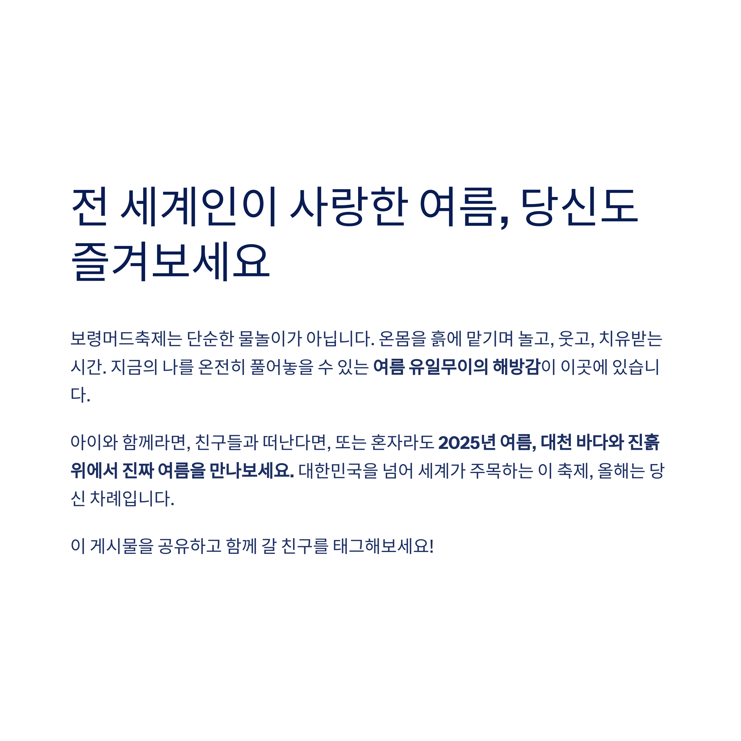 2025년 여름, 대천 바다와 진흙 위에서 진짜 여름을 만나보세요.