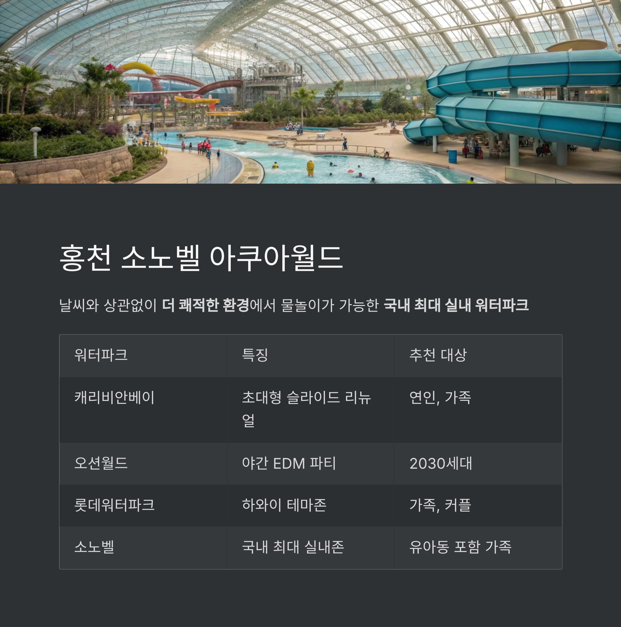 날씨와 상관없이 워터파크를 즐기고 싶다면 홍천 소노벨 아쿠아월드