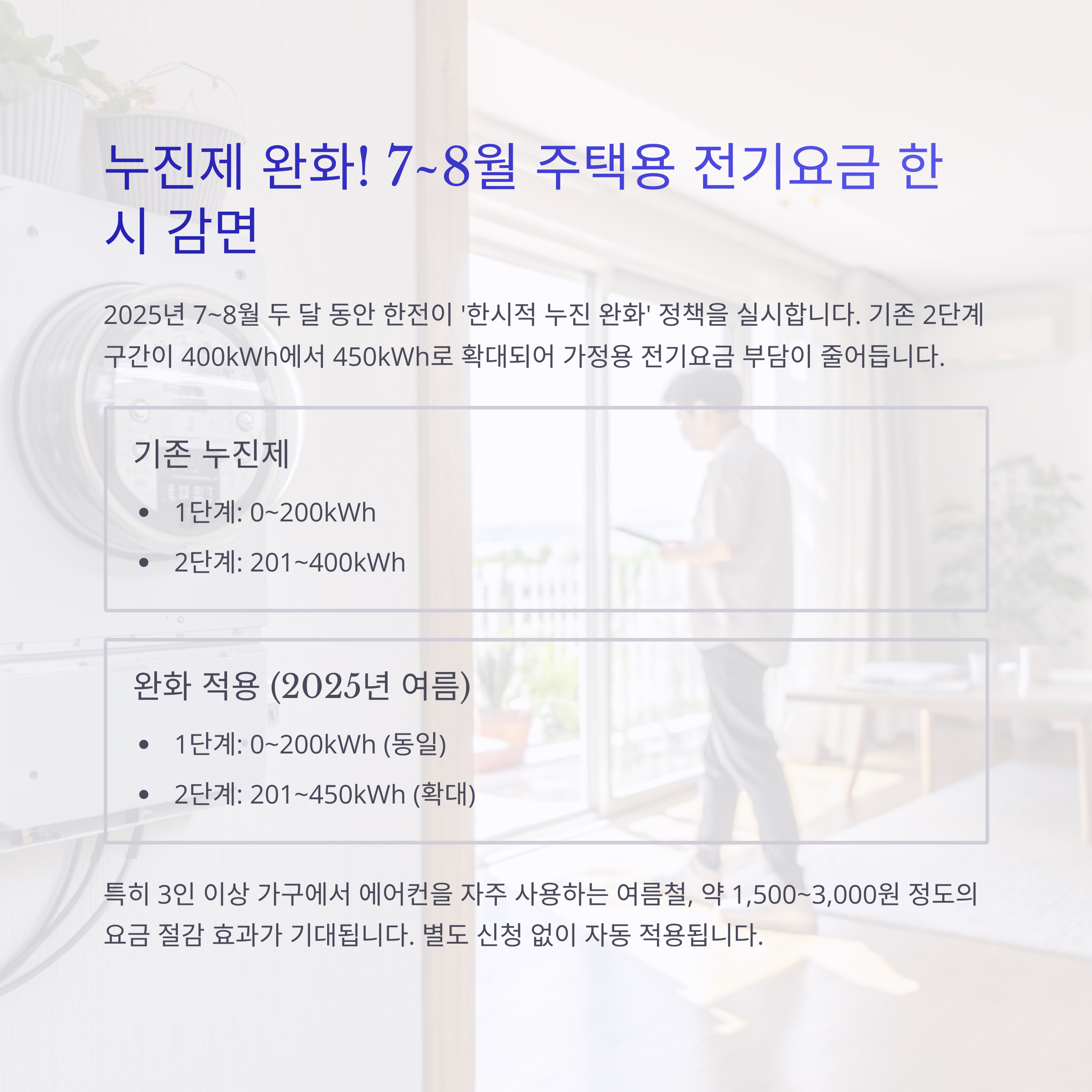 누진제 완화! 7~8월 주택용 전기요금 한시 감면 제도