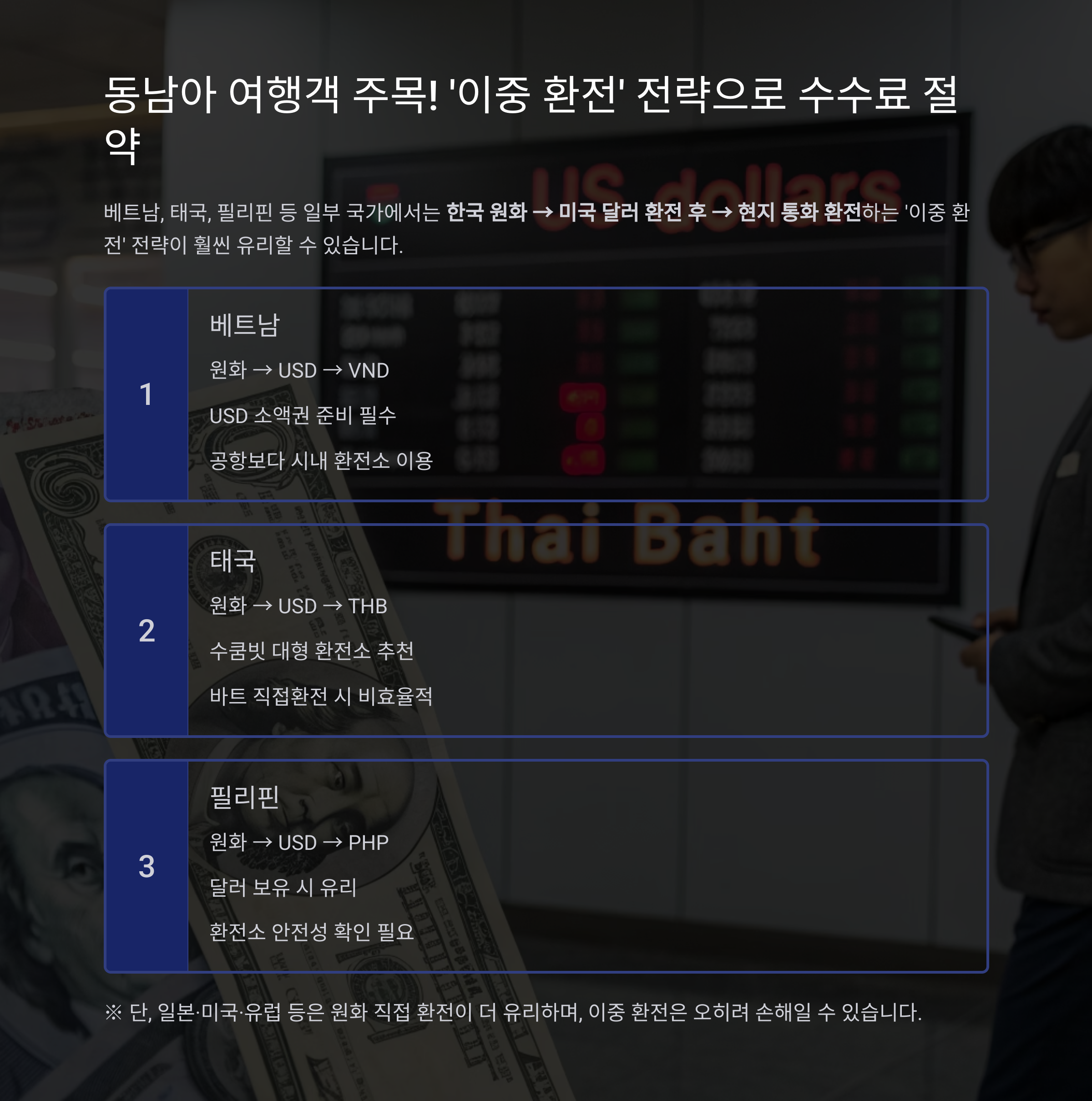 동남아 여행객 주목! ‘이중 환전’ 전략으로 수수료 절약