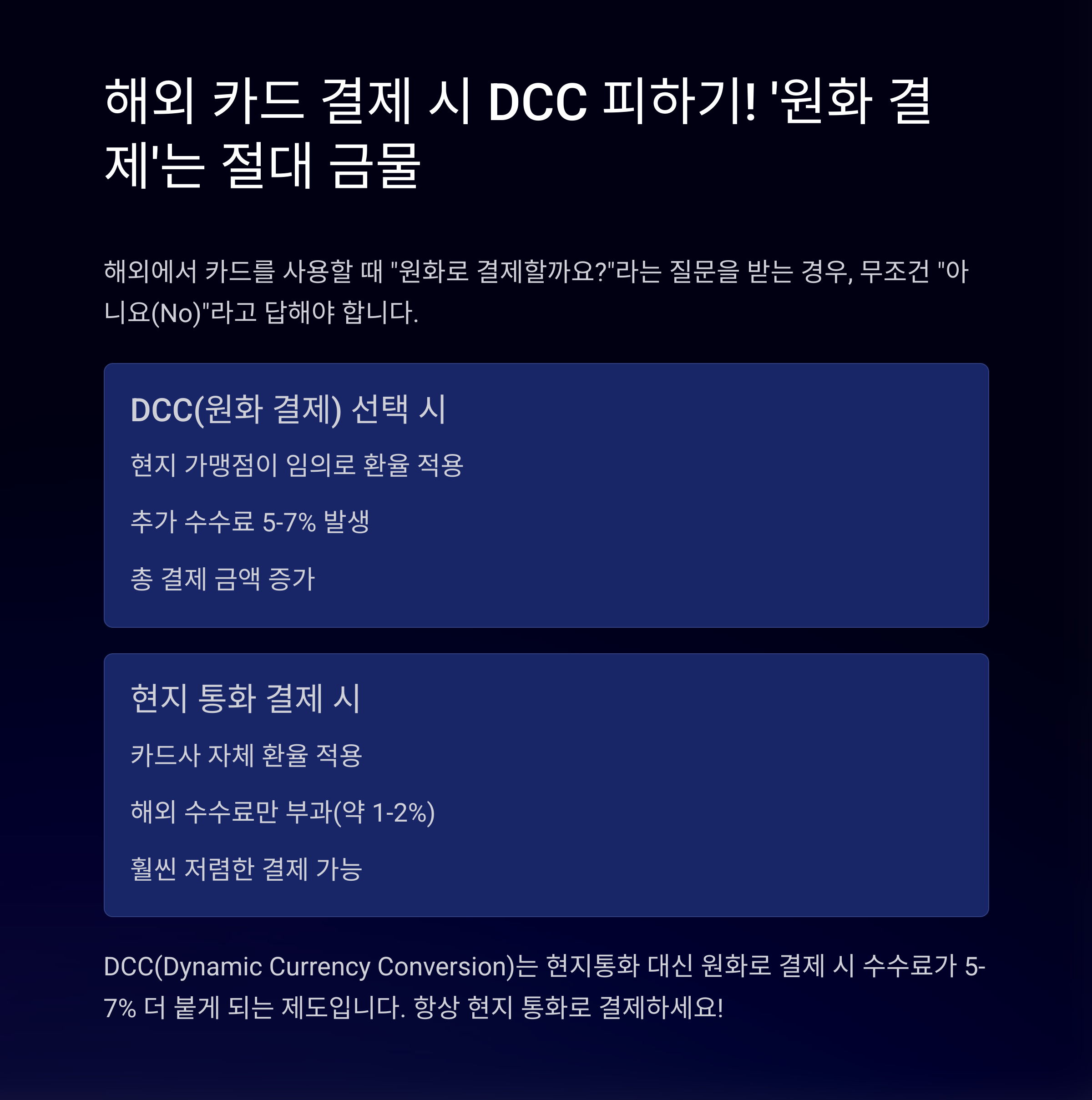 해외 카드 결제 시 DCC 피하기! ‘원화 결제’는 절대 금물