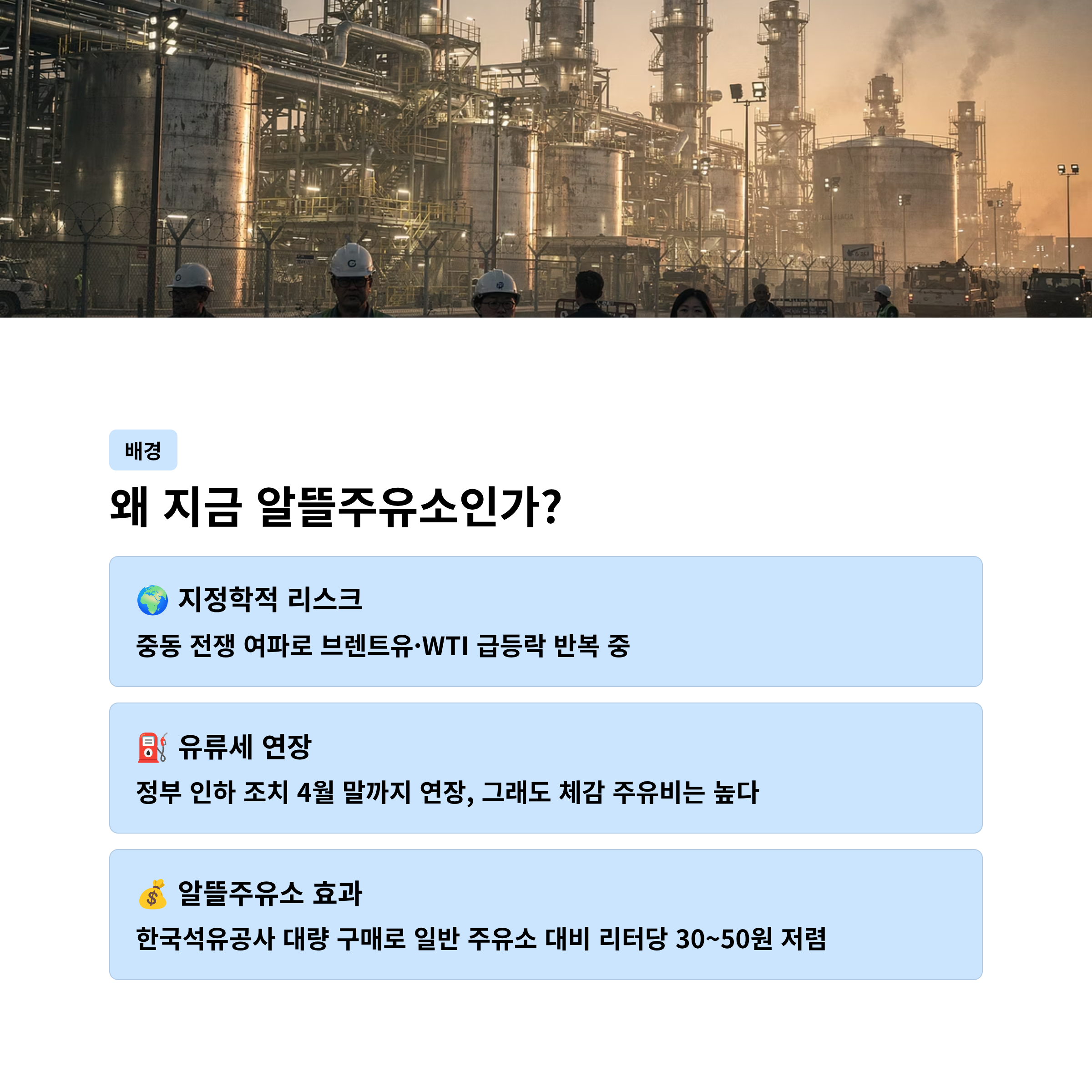 1. 중동 전쟁 여파와 유가 전망: 왜 '알뜰주유소'인가?