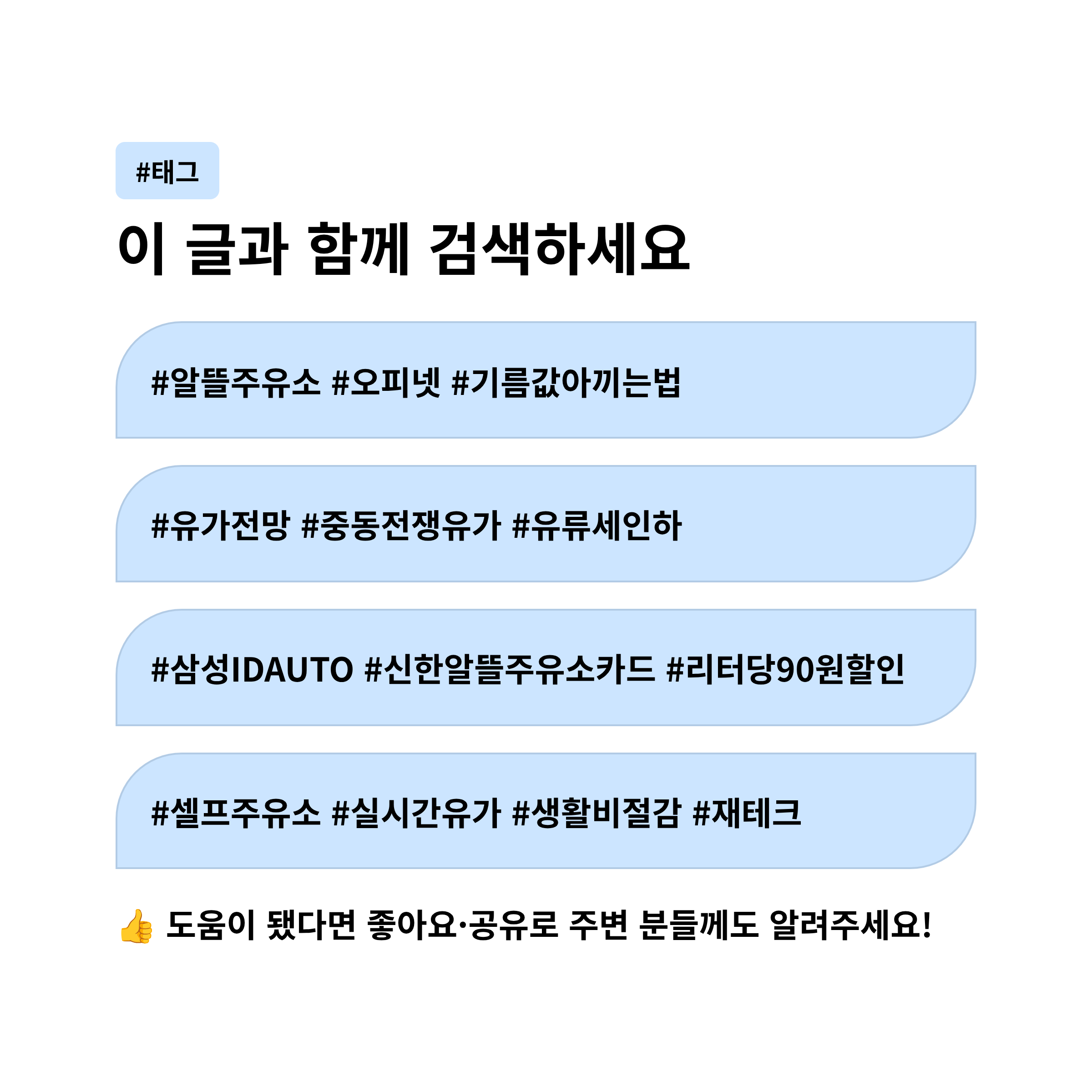#알뜰주유소 #기름값아끼는법 #오피넷 #유가전망 #중동전쟁유가 #휘발유가격 #경유가격 #주유할인카드 #자동차보험할인 #리터당90원할인 #최저가주유소 #고유가대책 #삼성IDAUTO #신한알뜰주유소카드 #에너지절약 #셀프주유소 #유류세인하 #실시간유가 #재테크 #생활비절감