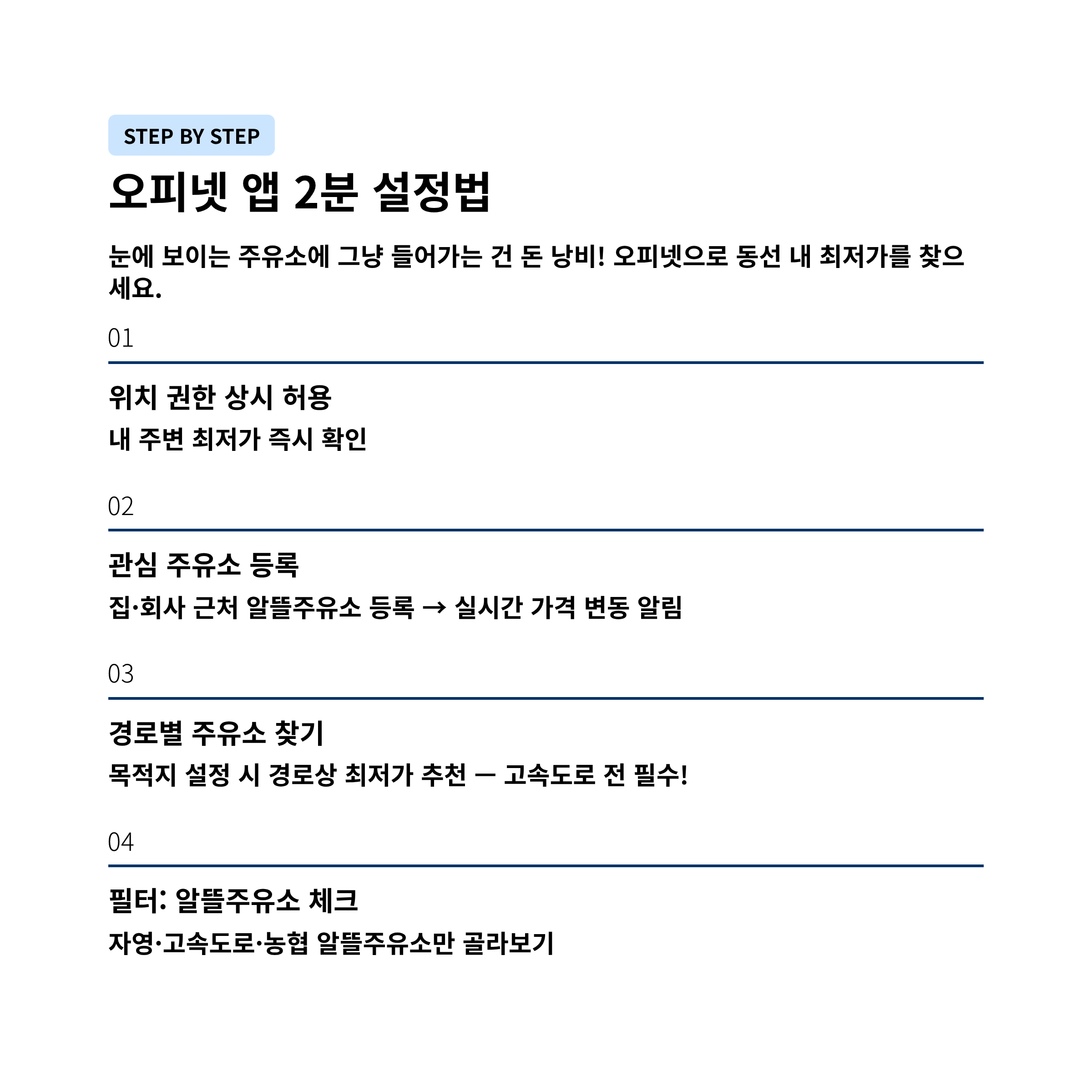 2. 오피넷(Opinet) 앱 2분 설정법: 최저가 주유소 자동 탐색