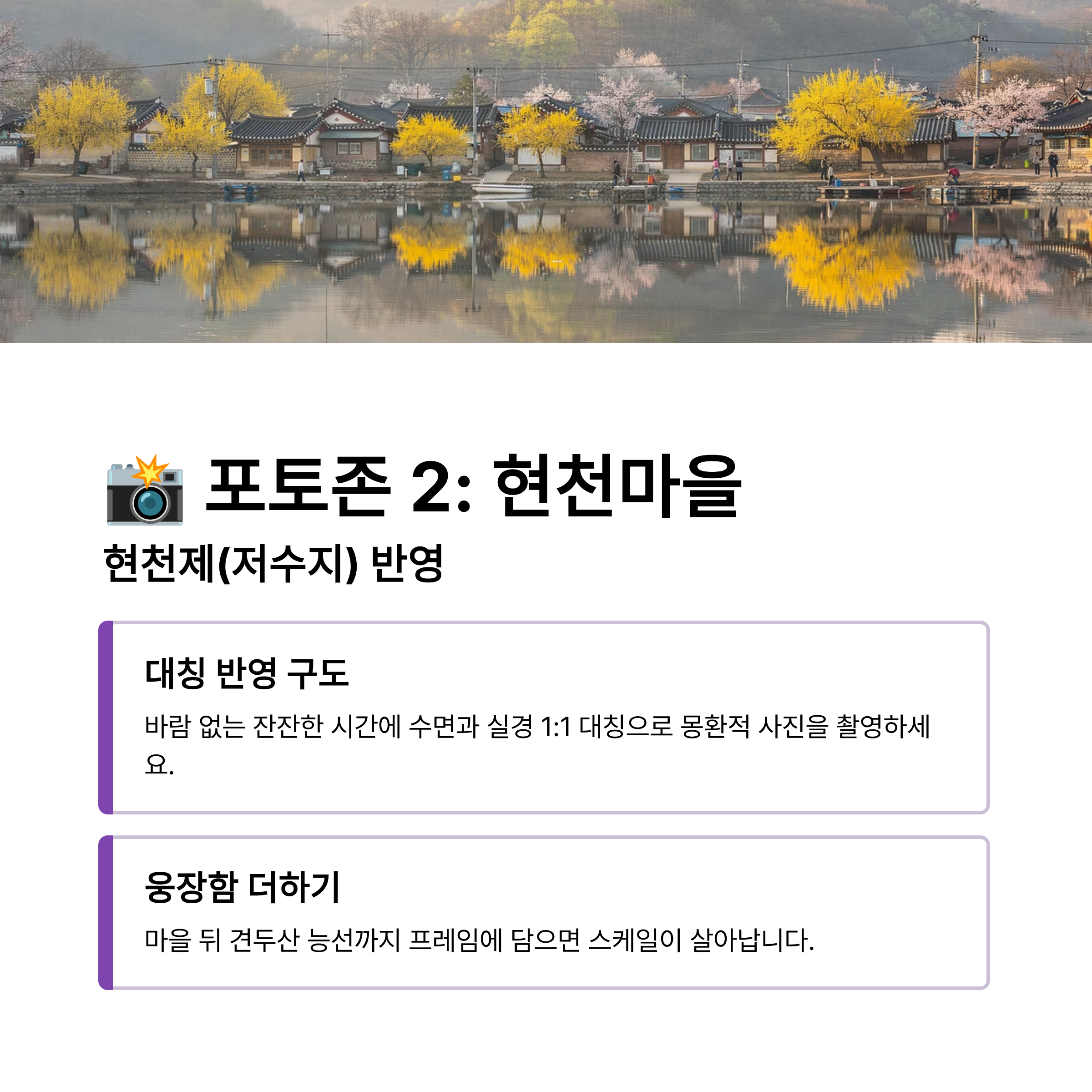 📸 포토존 2: 현천마을 '현천제(저수지) 반영'