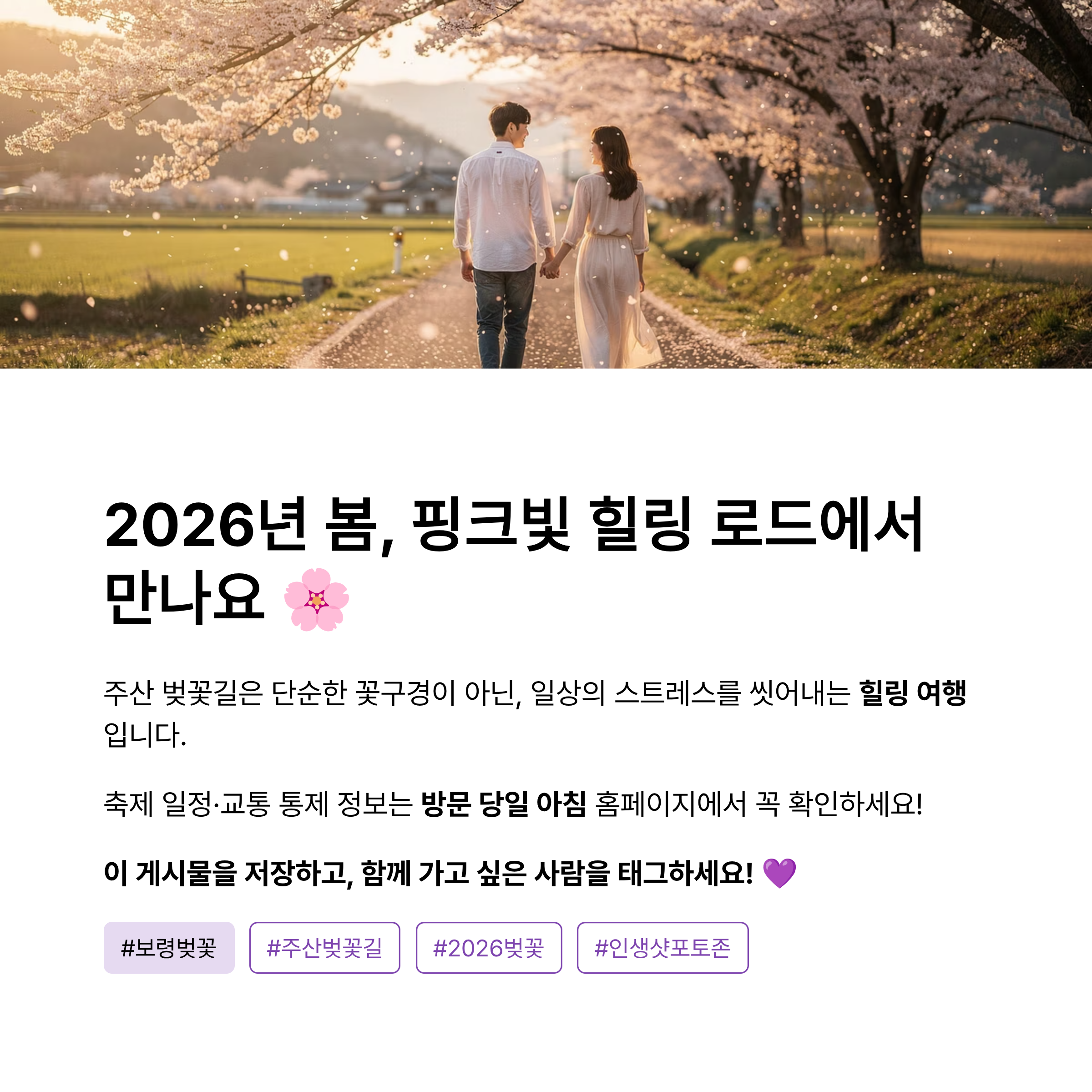 #보령벚꽃 #주산벚꽃길 #2026벚꽃개화시기 #보령가볼만한곳 #충남벚꽃명소 #보령댐벚꽃 #벚꽃드라이브 #인생샷포토존 #주산봄꽃축제 #보령여행코스 #서해안벚꽃 #벚꽃촬영팁 #주산한우 #보령맛집 #대천해수욕장 #벚꽃엔딩 #전국벚꽃명소 #봄꽃축제일정 #주말여행지추천 #가족나들이스팟