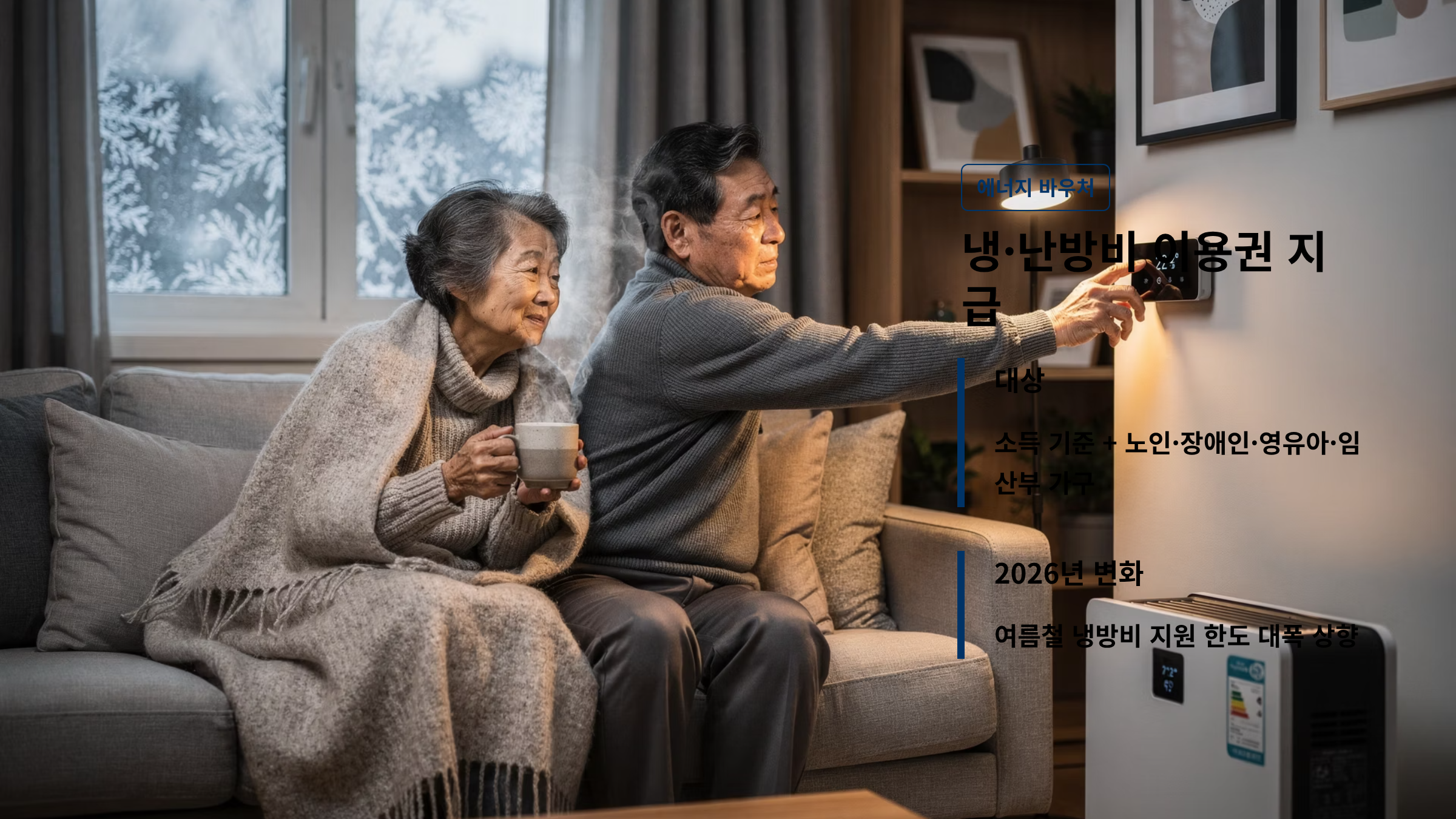 - 2026년 변화: 기후 변화로 인해 여름철 냉방비 지원 한도가 대폭 상향되었습니다.