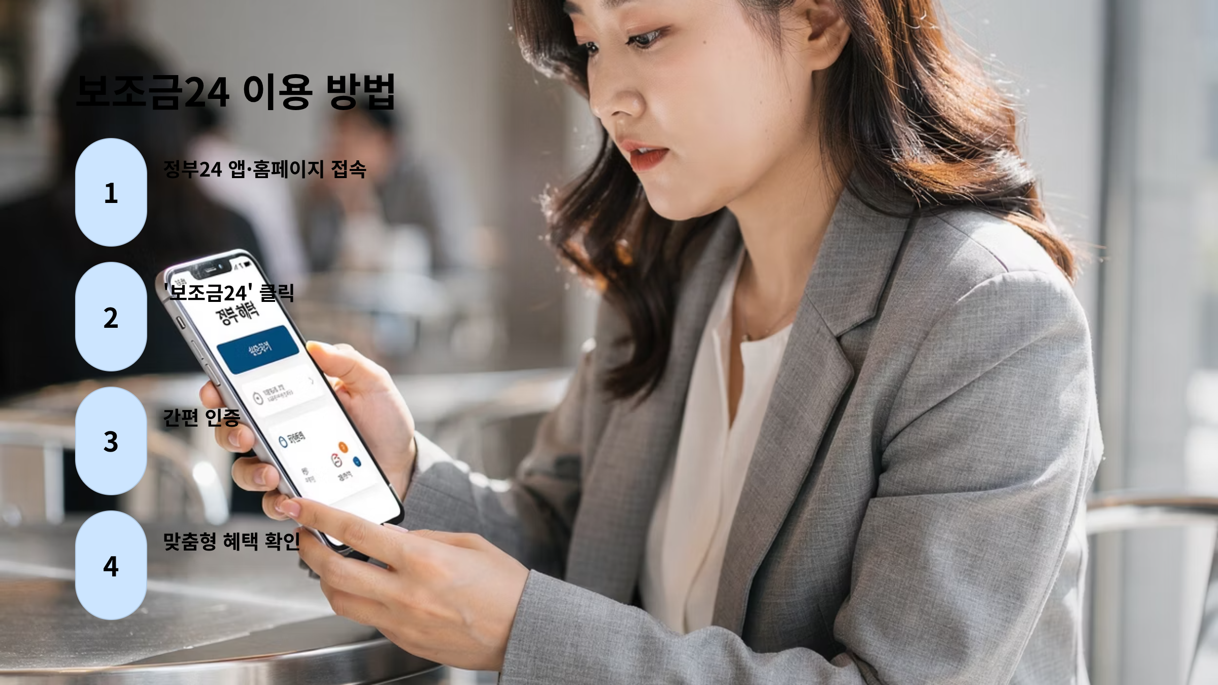 - 이용 방법: '정부24' 앱 또는 홈페이지 접속 → '보조금24' 클릭 → 간편 인증 → 맞춤형 혜택 확인.