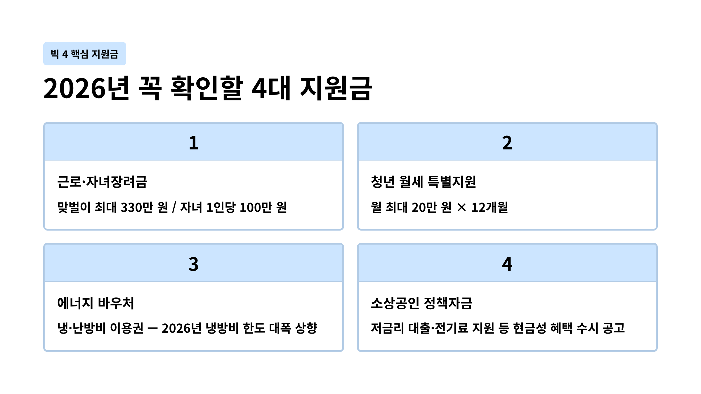 2. 2026년 꼭 확인해야 할 ‘빅 4’ 핵심 지원금