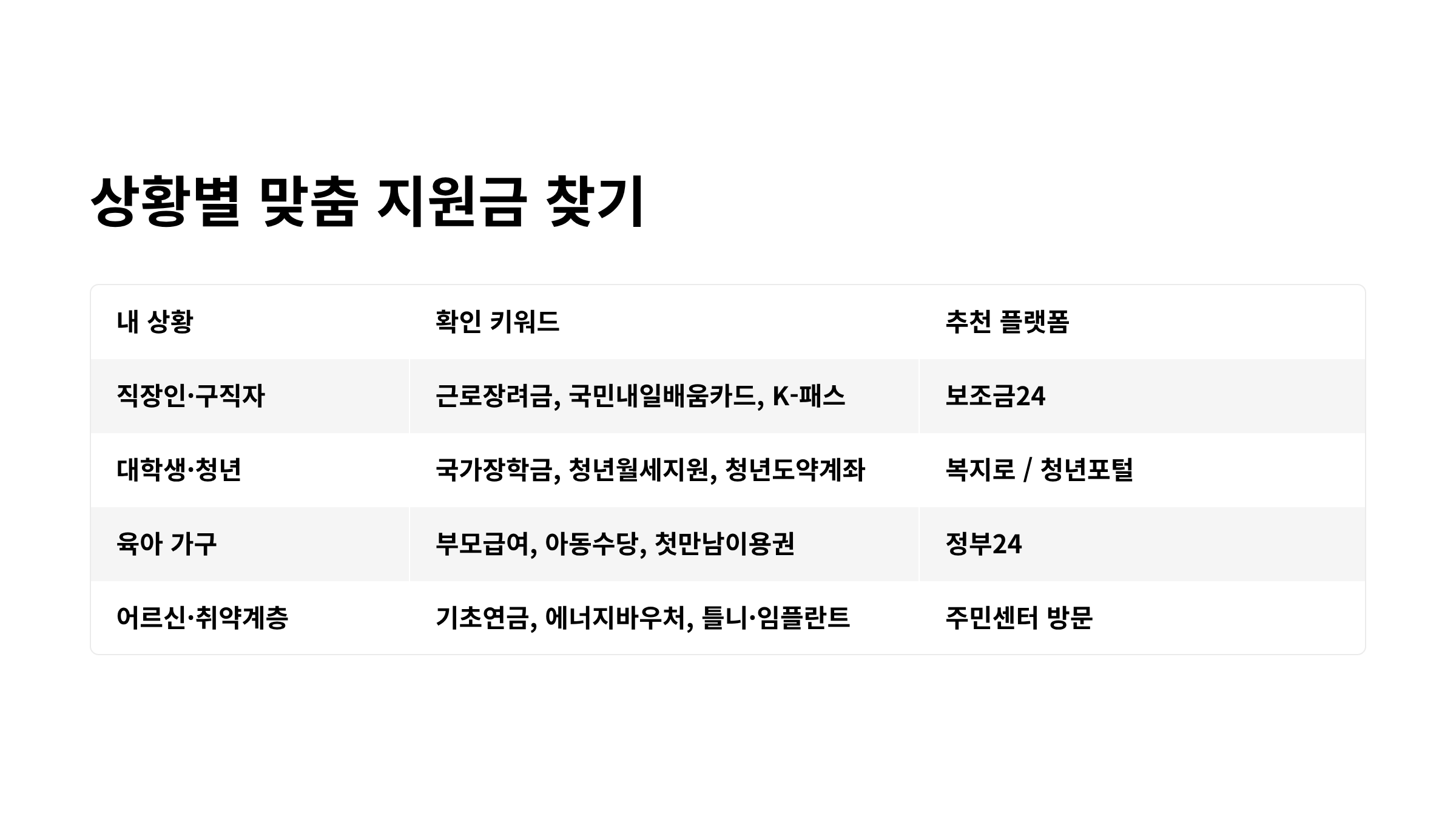 | 내 상황 | 확인해야 할 키워드 | 추천 플랫폼 |