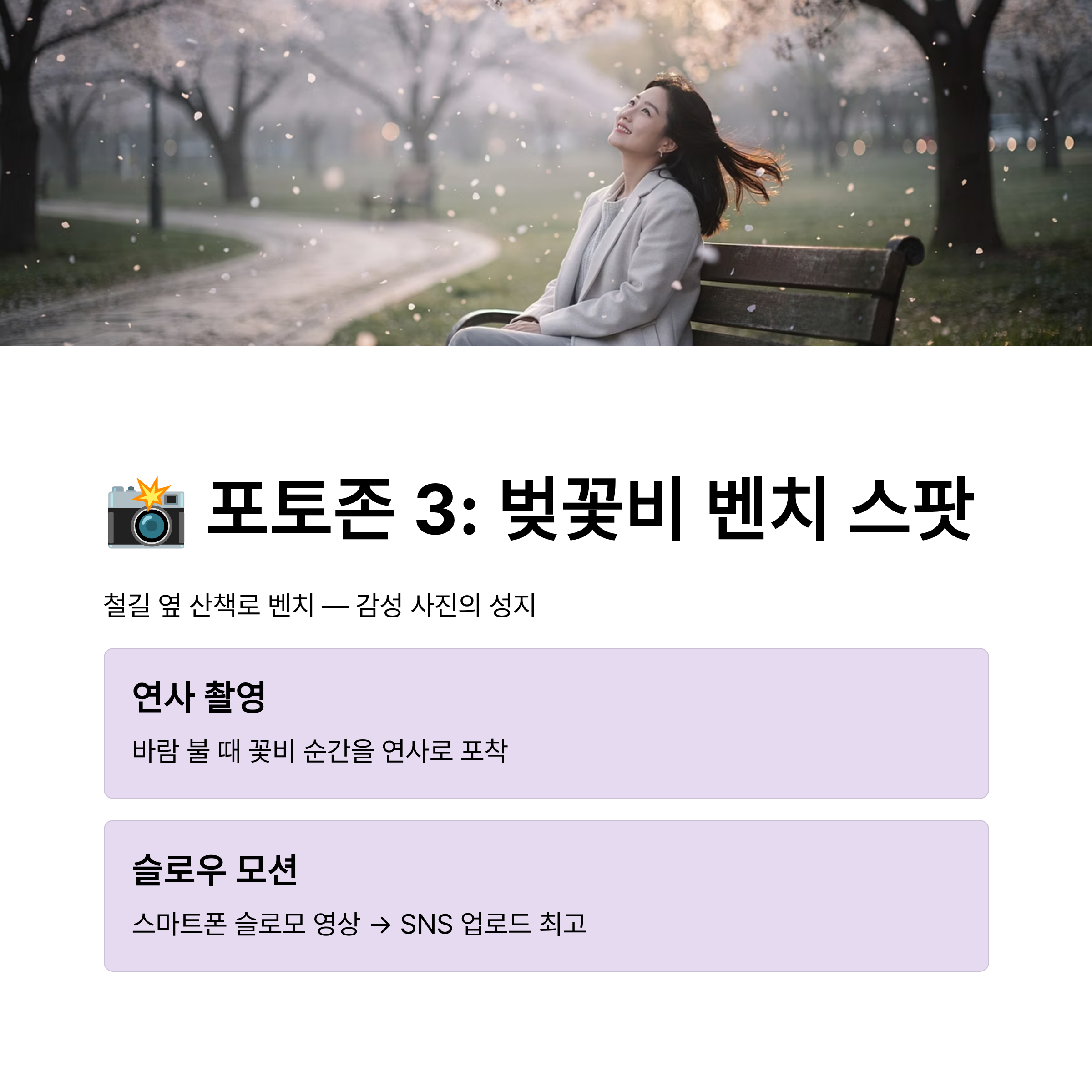 📸 포토존 3: 벚꽃비 내리는 '벤치 스팟'