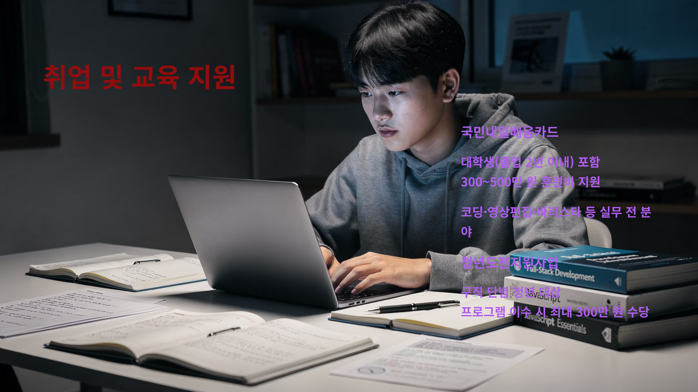 - 혜택: 맞춤형 프로그램을 이수하면 최대 300만 원의 수당을 지급받습니다.