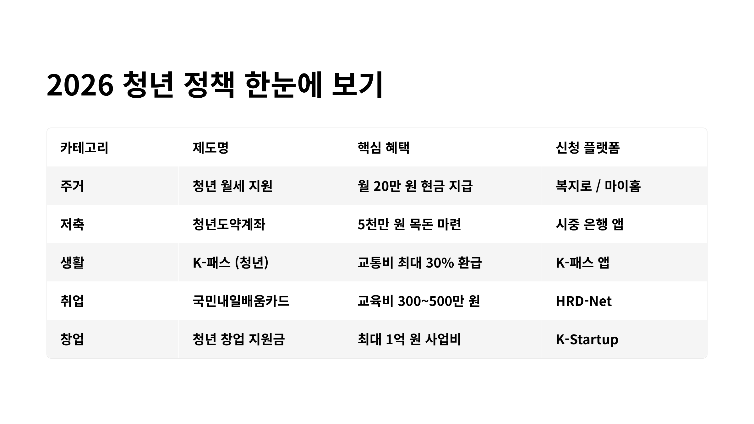 #청년지원금 #청년정책 #청년복지 #청년월세지원 #청년재테크 #2026청년정책 #청년도약계좌 #청년내일저축계좌 #목돈마련 #주거지원 #국민내일배움카드 #청년창업지원 #복지로 #정부24 #온통청년 #취업준비생지원 #사회초년생팁 #월세절약 #청년교통비지원 #경제독립