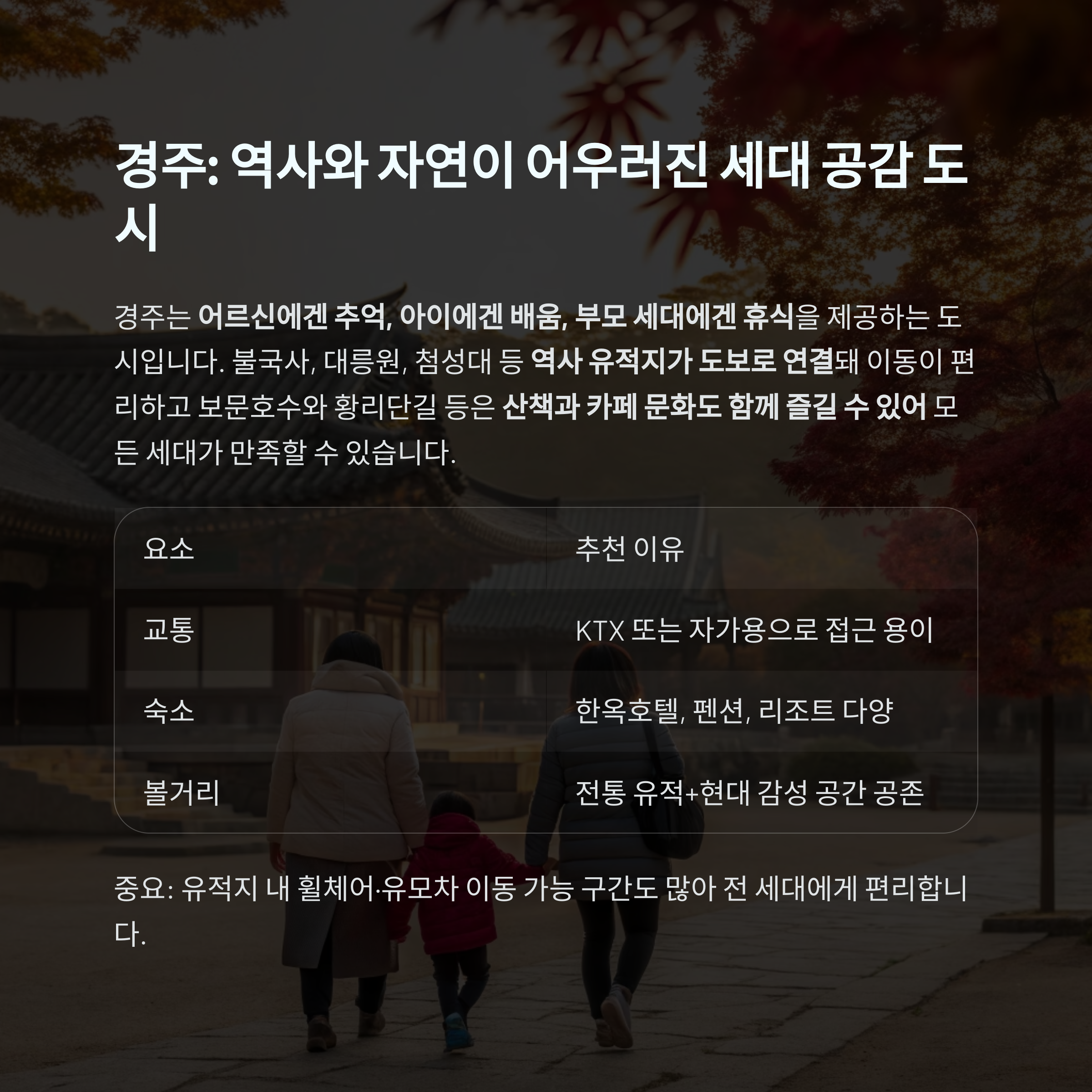 1. 국내 – 경주: 역사와 자연이 어우러진 세대 공감 도시