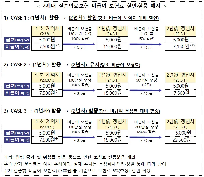 2024년 7월 1일부터 4세대 실손의료보험 가입자 중 비급여보장 특약 가입자는 보험료 갱신 때 비급여 의료 이용량과 연계해 비급여 보험료를 할인 or 할증한다고 금융위원회는 밝혔습니다.