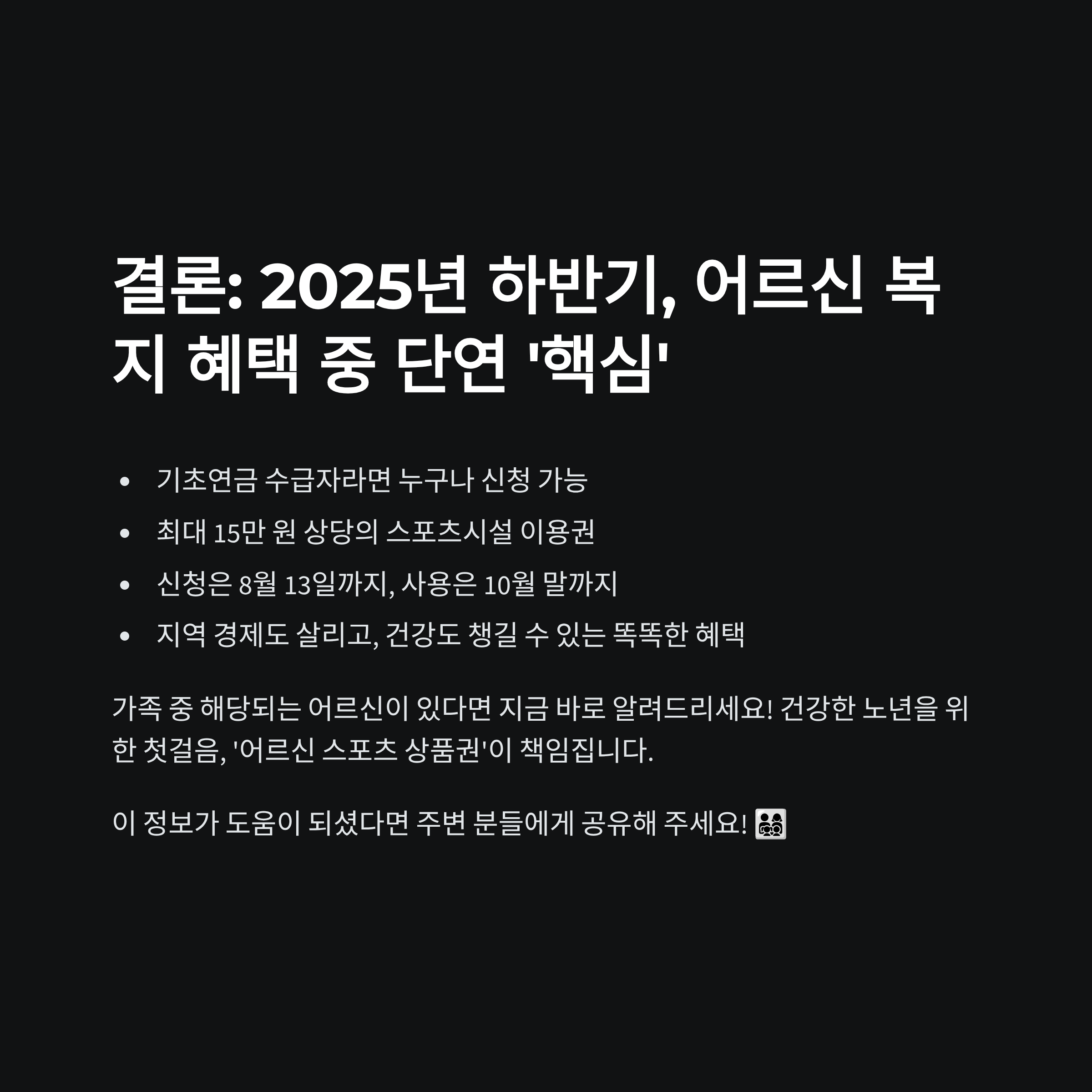 결론: 2025년 하반기, 어르신 복지 혜택 중 단연 ‘핵심’
