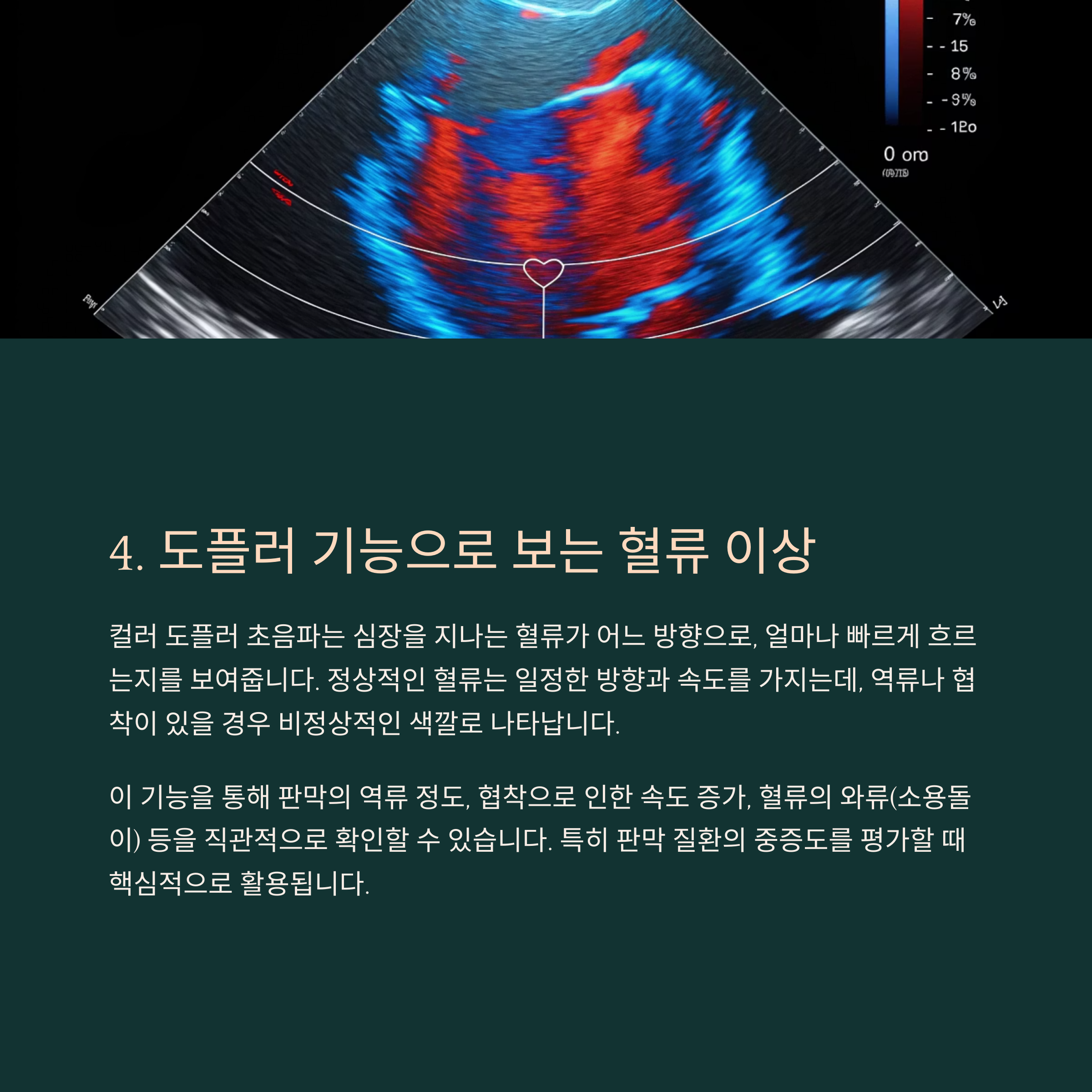 특히 판막 질환의 중증도를 평가할 때 핵심적으로 활용됩니다.