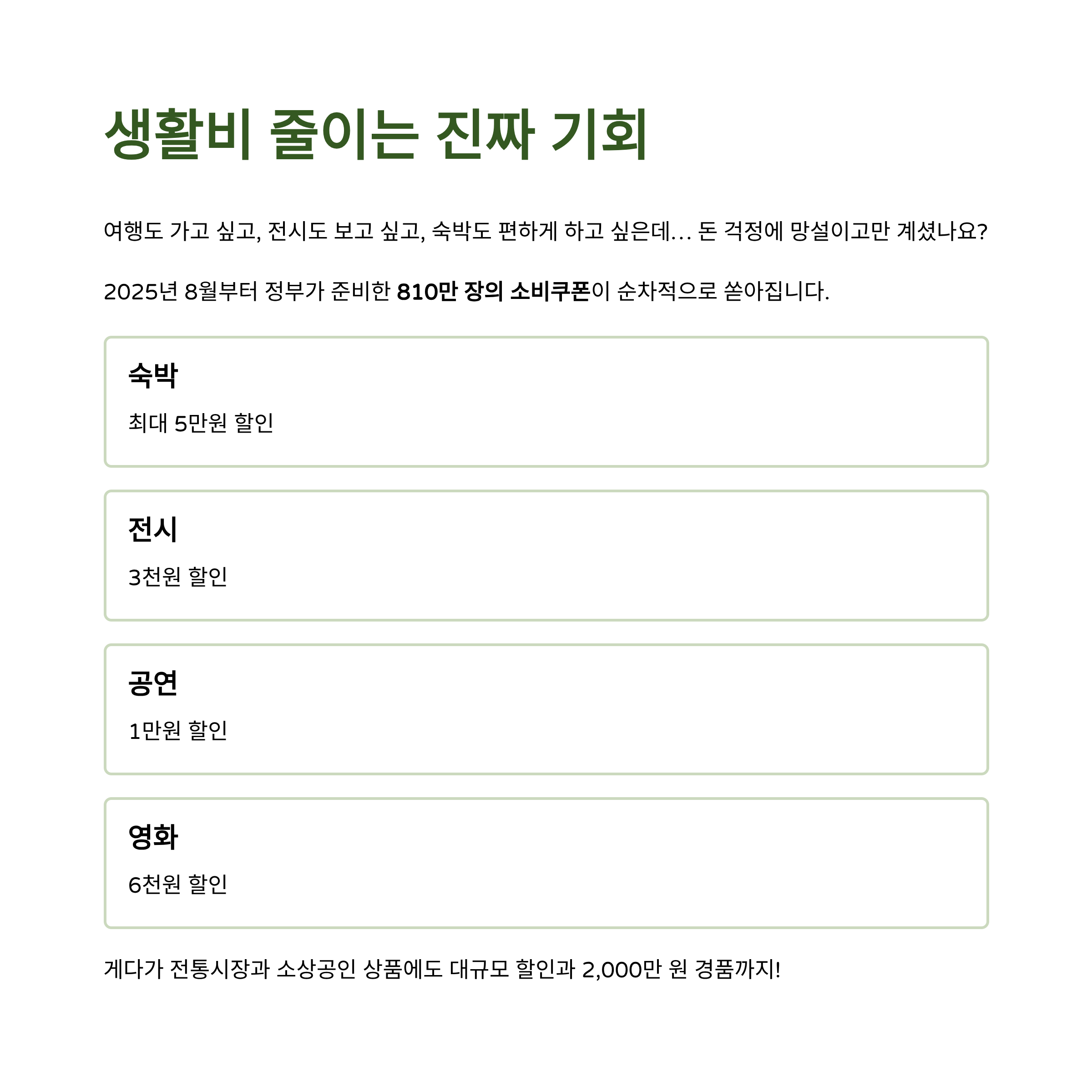 2025년 8월부터 정부가 준비한 810만 장의 소비쿠폰이 순차적으로 쏟아집니다.
