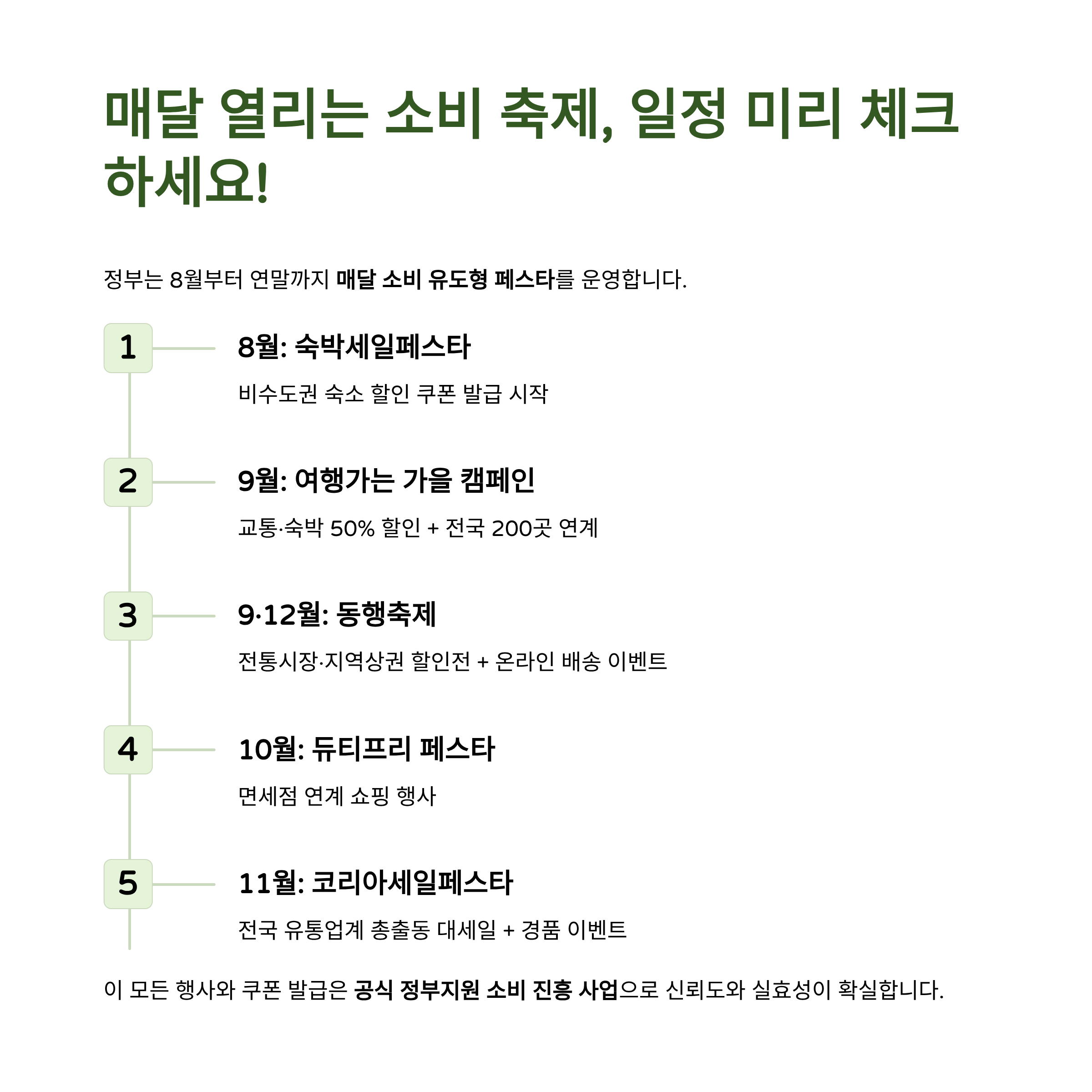정부는 8월부터 연말까지 매달 소비 유도형 페스타를 운영합니다.