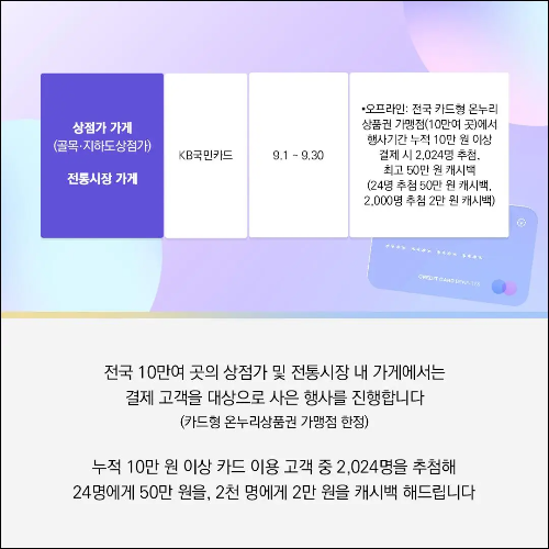 - 대상: KB 페이 온누리쇼핑몰 이용 고객