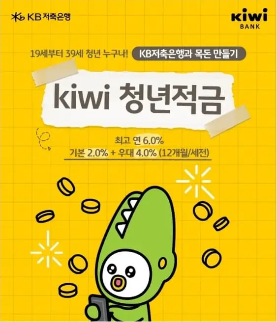 KB저축은행 kiwi청년적금 가입방법, 우대이율, 대상, 세제혜택, 이벤트